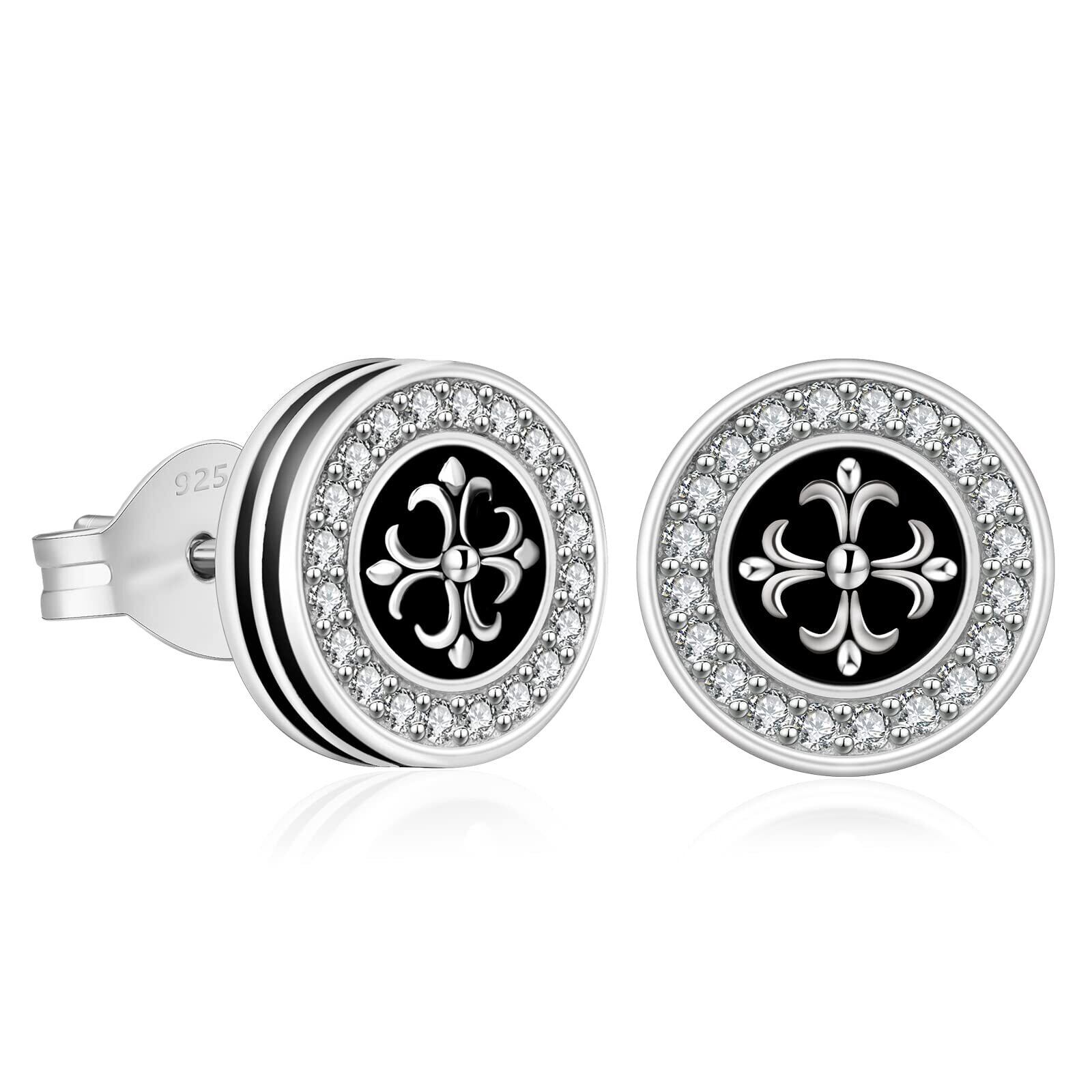 KRKC&CO スタッドピアス メンズ ラウンド シルバー925純銀 20G クロムハーツ 黒ジルコニア シンプル 人気 両耳 金属アレルギー対応 イヤリング ギフト かっこいい アクセサリー [並行輸入品]