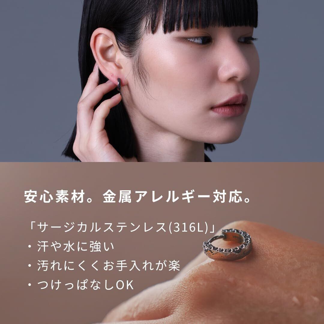 [LION HEART] ピアス THE EDGEカッティングフープピアス サージカルステンレス (金属アレルギー対応) メンズ レディース 片耳用 (マットブラック)
