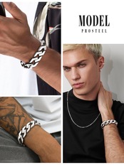 【存在感抜群の喜平ブレスレット!】「PROSTEEL」の喜平ブレスレットは、幅16mmの太めのブレスレットチェーンデザインが特徴。シンプルながらも洗練されたスタイルで、ヒップホップやストリートファッションにぴったりのアイテムです。あなたの個性的なスタイルを引き立てること間違いなし!