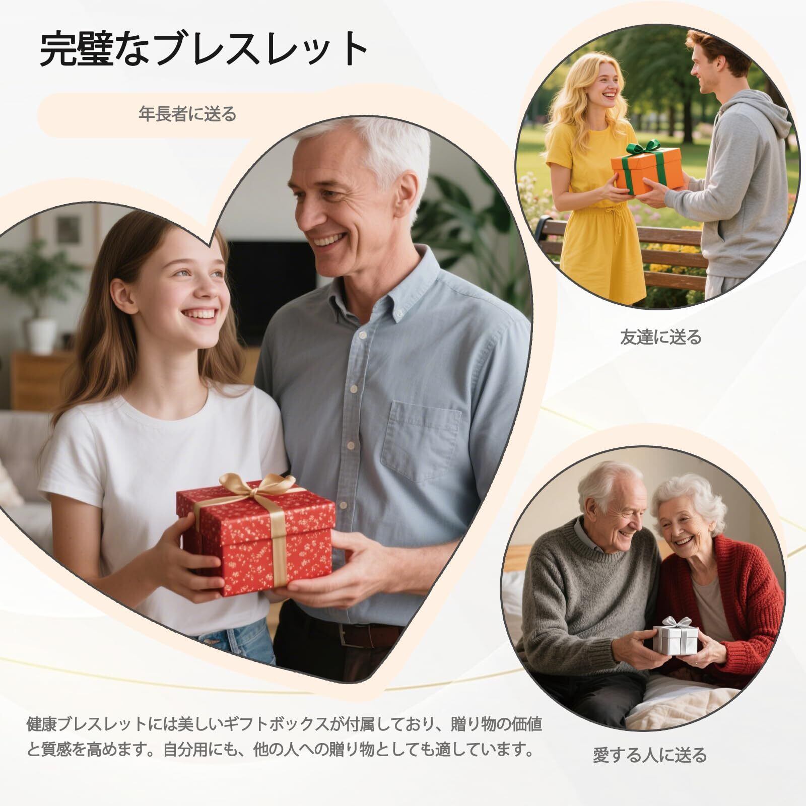 プレゼントに最適:ゴールド/シルバー/ブラック/ゴールドシルバーミックスの4色展開。光沢感のあるカラーリングで、ビジネスからカジュアルまで幅広いスタイルにマッチ。高級感あるパッケージ付属で、父の日・母の日や健康祝いの贈り物として即利用可能。