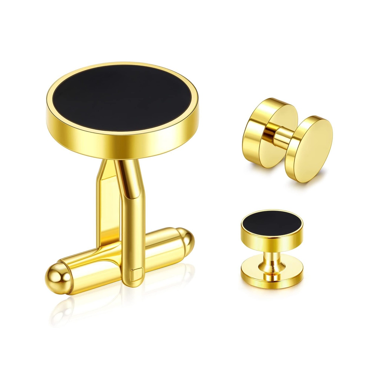 JeryWe 男性用カフスボタンとタキシードスタッド シャツとネクタイシャツアクセサリークラシックタキシードボタンとカフスボタンのステンレススチールゴールドカフスボタン
