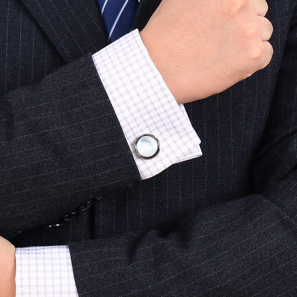 Rockyu カフスボタン メンズ おしゃれ 結婚式 ラウンドシェル 白蝶貝カフス ビジネス フォーマル アクセサリー