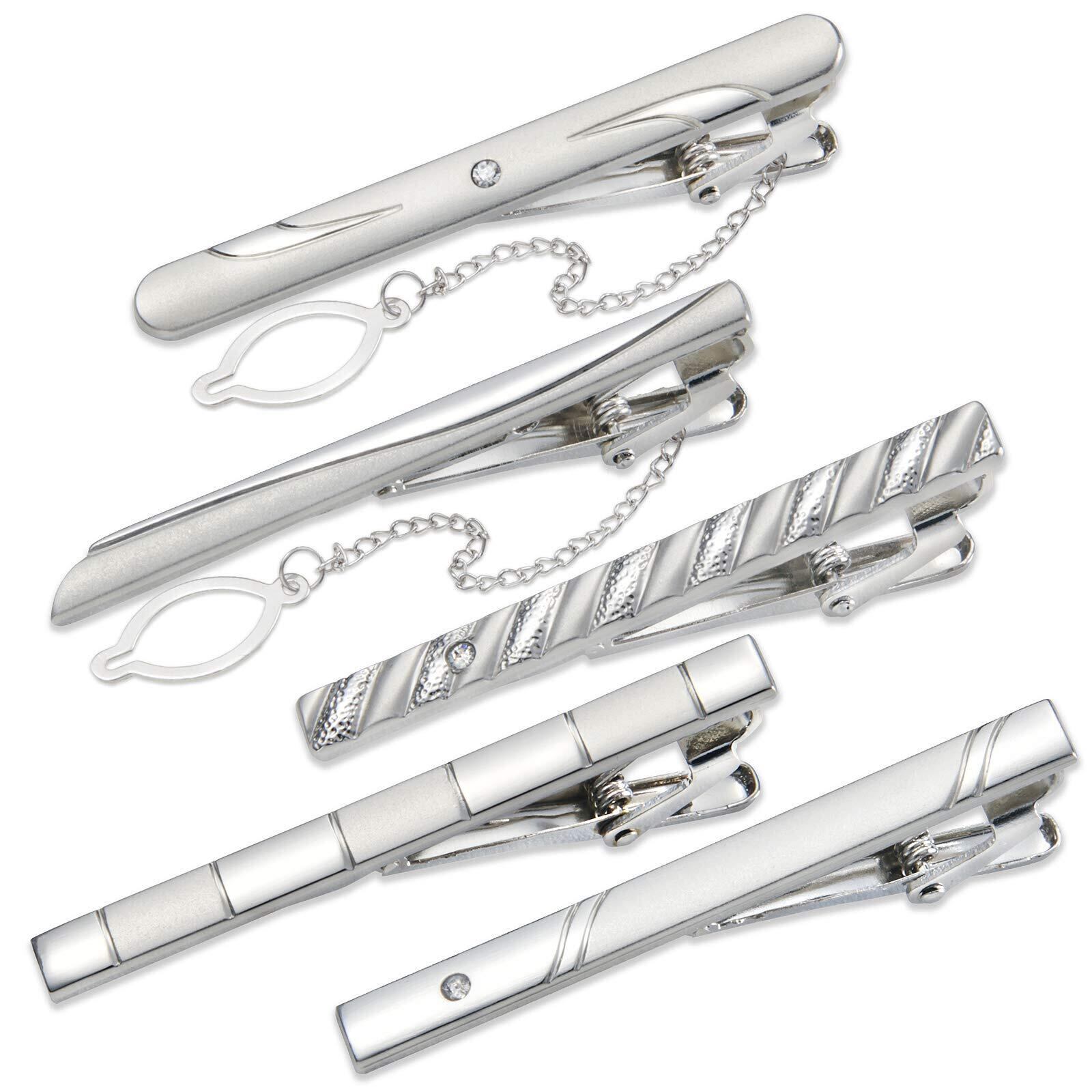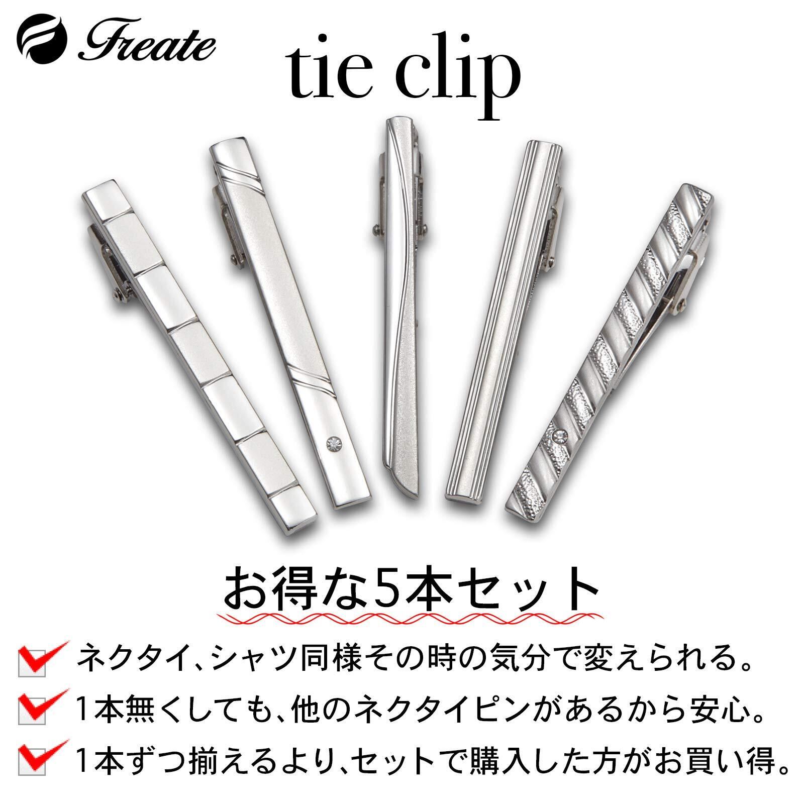 [Freate ネクタイピン メンズ アクセサリー おしゃれ 結婚式 ブランド シンプル 高級 シルバー 5本セット (Bタイプ)]