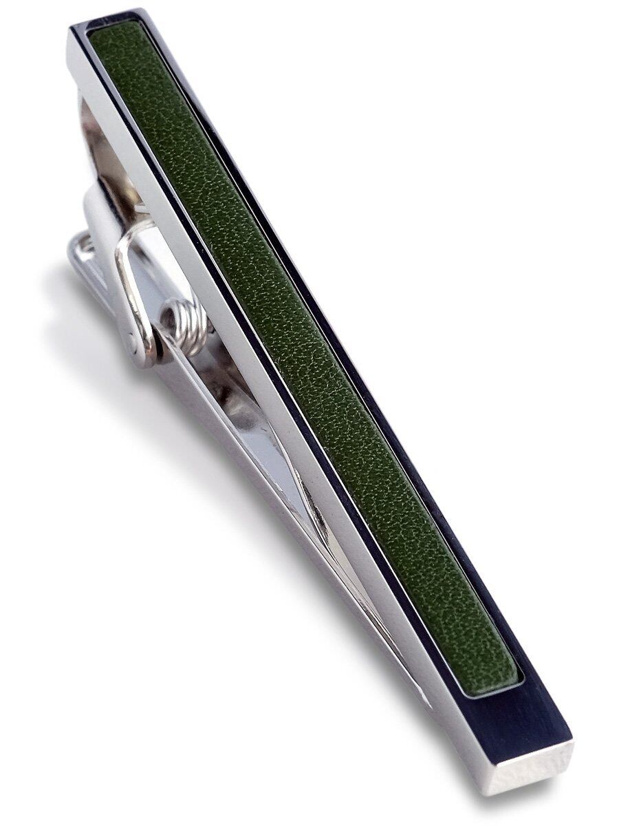 [タバラット] ネクタイピン タイピン メンズ 日本製 本革 真鍮 ワニ口式 メンズ (ダークグリーン)