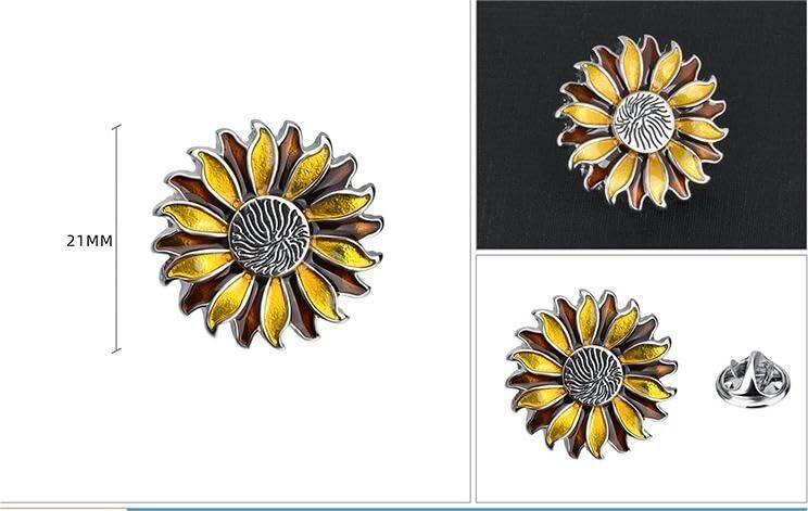 【Rockyu ラペルピン】ひまわりラペルピン メンズ ゴールド シルバー フォーマルアクセサリー。素材: 合金、サイズ: 21mm、重量: 軽量で快適。