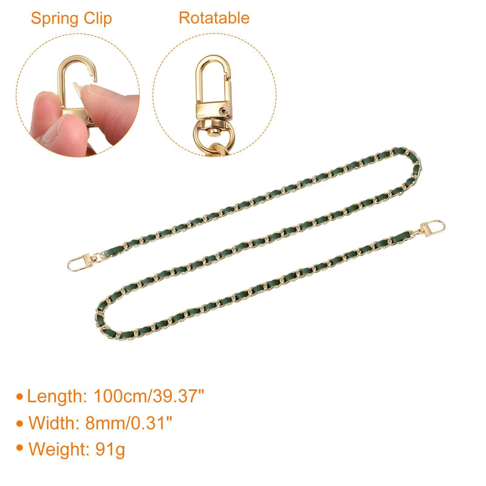 [uxcell] バッグチェーン 長さ100cm 92.5g カバン レザー アイアン バックルの長さ33 mm ショルダー紐 チェーンストラップ 持ち手 取っ手 交換 付け替え 修理 緑ストラップ 金色チェーン