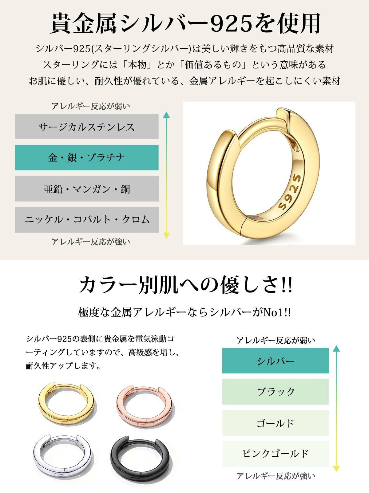[ChicSilver] フープピアス レディース リングピアス メンズ つけっぱなし 金属アレルギー対応 シルバー925 ジルコニア 内径6mm 20g