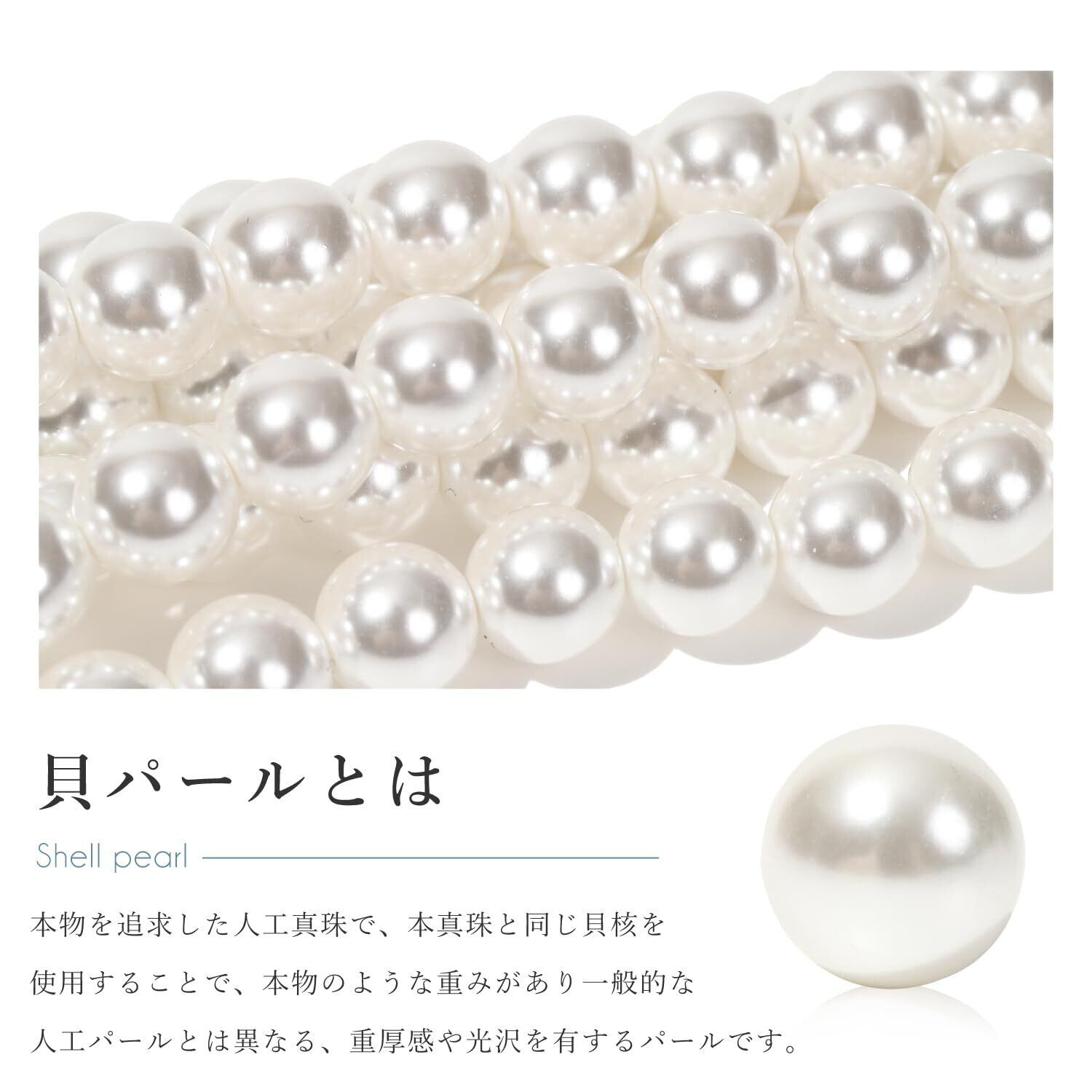 【花珠級磨き天然貝パール】貝核に天然貝核を使用したパール珠は、本真珠と比べても勝るとも劣らない仕上がりになっています。 本真珠と比較しても汗や汚れに強く、耐久性に優れているため、コストパフォーマンスに優れたパールアクセサリーです。