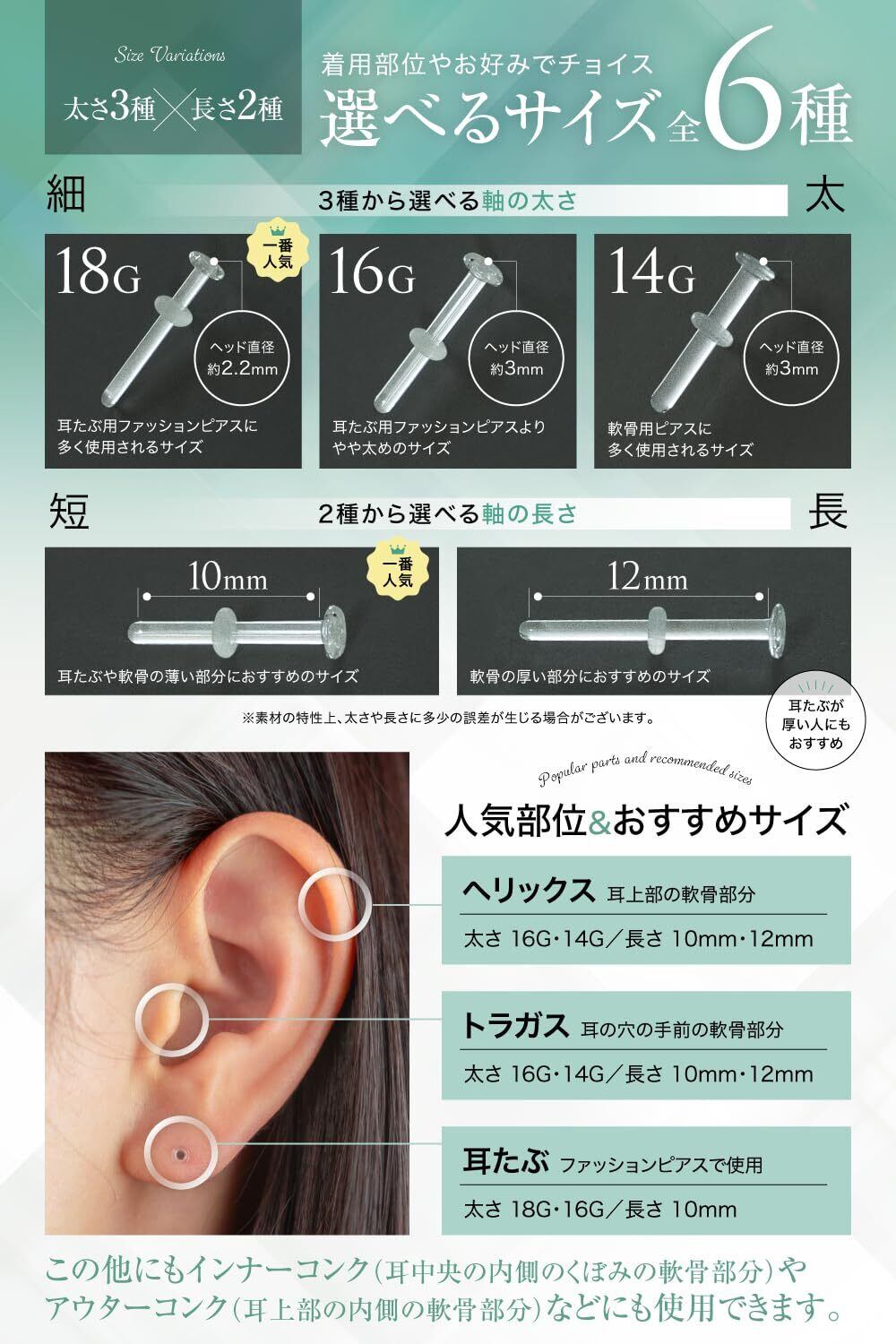 【おしゃれを楽しむための透明ピアス!】この[Coperta]の透明ピアスは、高品質なガラス素材を使用しており、目立たずしかもおしゃれなデザインが特徴です。紫外線照射済みのクリアガラスが、お肌に自然に溶け込み、デイリーコーデにぴったりです。14G、16G、18Gのサイズがあり、メンズ・レディース問わずご利用いただけます。