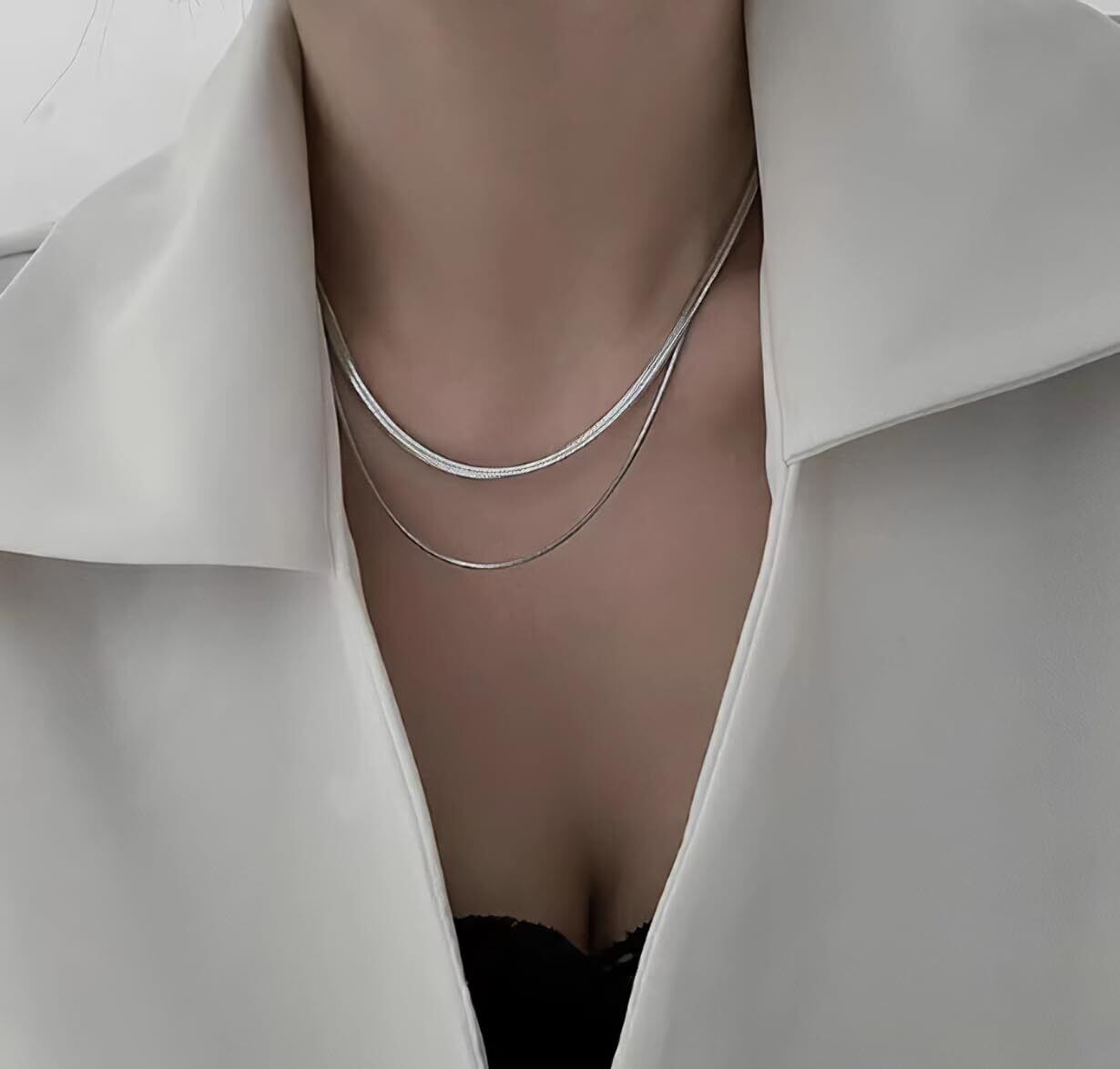 [Mesaro] ステンレス 二重 ネックレス シンプル ダブルチェーン カジュアル スネークチェーン シルバー おしゃれ レディース 女性 ギフト プレゼント デイリー ジュエリー