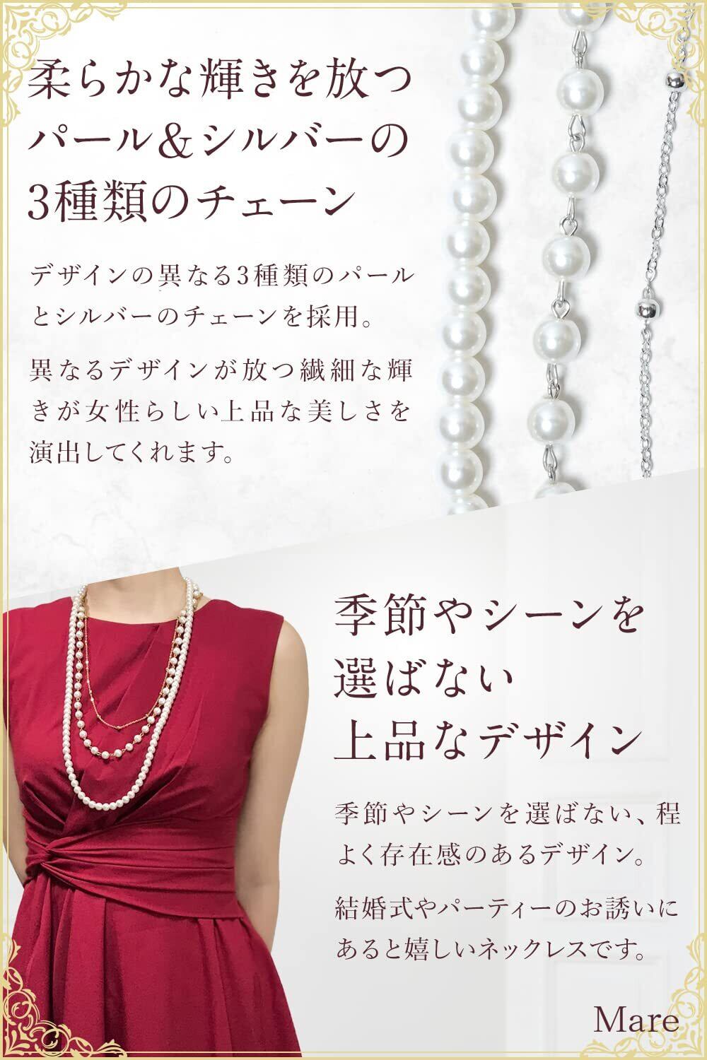 Mare(マーレ) パール ネックレス ロング レディース 結婚式 パーティ 入学 卒業 式 おしゃれ シルバー アクセサリー フォーマル お呼ばれ プレゼント ギフト (ギフトバック付き)