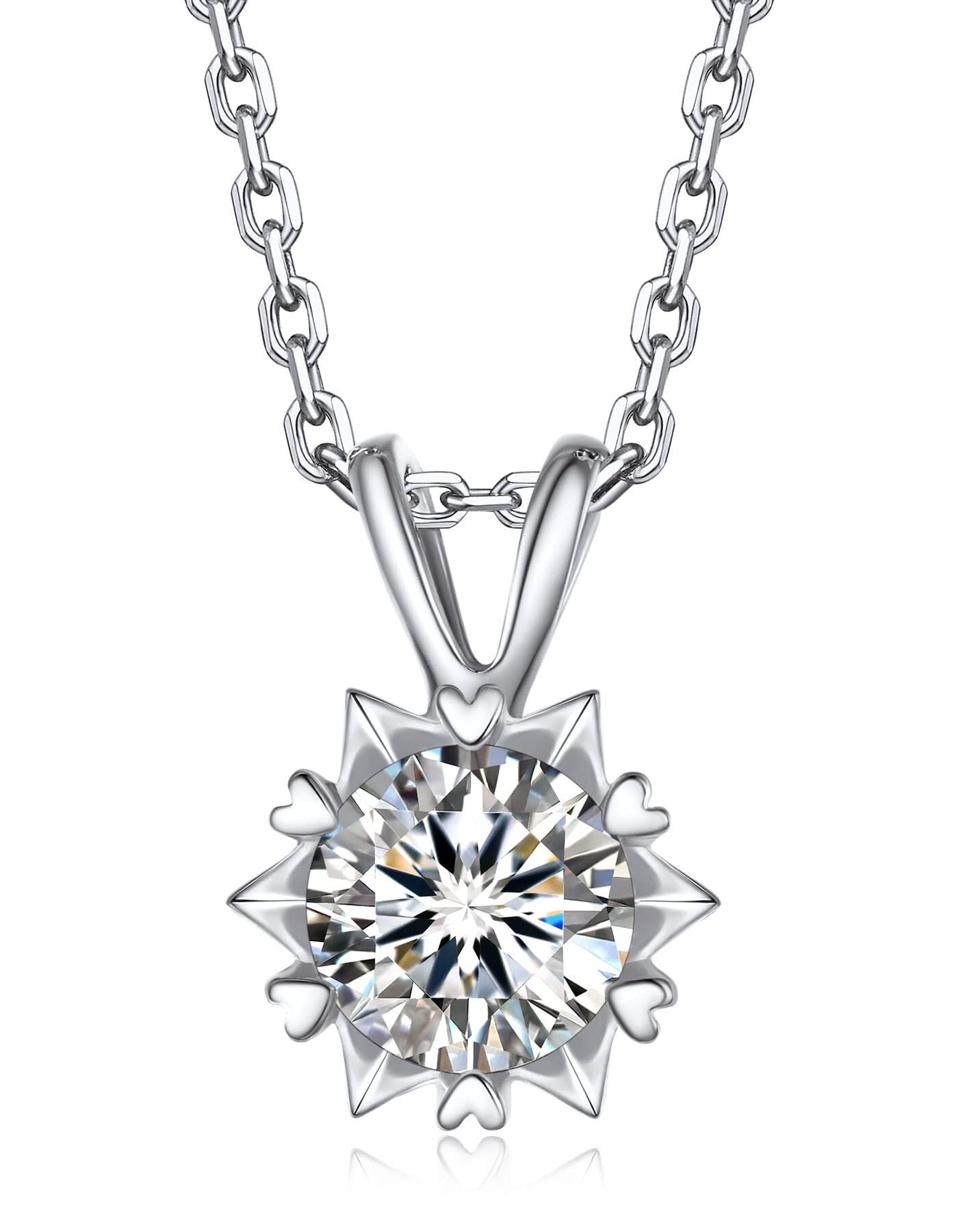 【雪花 ハート ネックレス】2ct Moissaniteをメインストーンとして、雪の結晶をモチーフにデザインされたストーンホルダーにセットされています雪の結晶の花びらはハートの形をしています。このネックレスは雪の結晶のような純粋な愛と情熱を細部に表現しています。このモアッサナイト ネックレスがキラキラで、クラシック、シンプル、エレガントで、デイリー、デート、ビジネスなどの様々な服装やスタイルに合います。