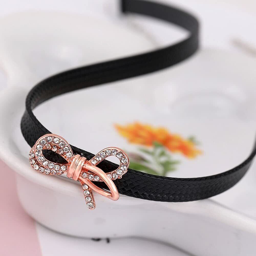 [Deelfel] チョーカー レディース 黒 チョーカーリング 蝶結びチョーカー 首輪 ジルコニア ファッション アクセサリー ステンレス 金属アレルギー対応 サイズ調整可能
