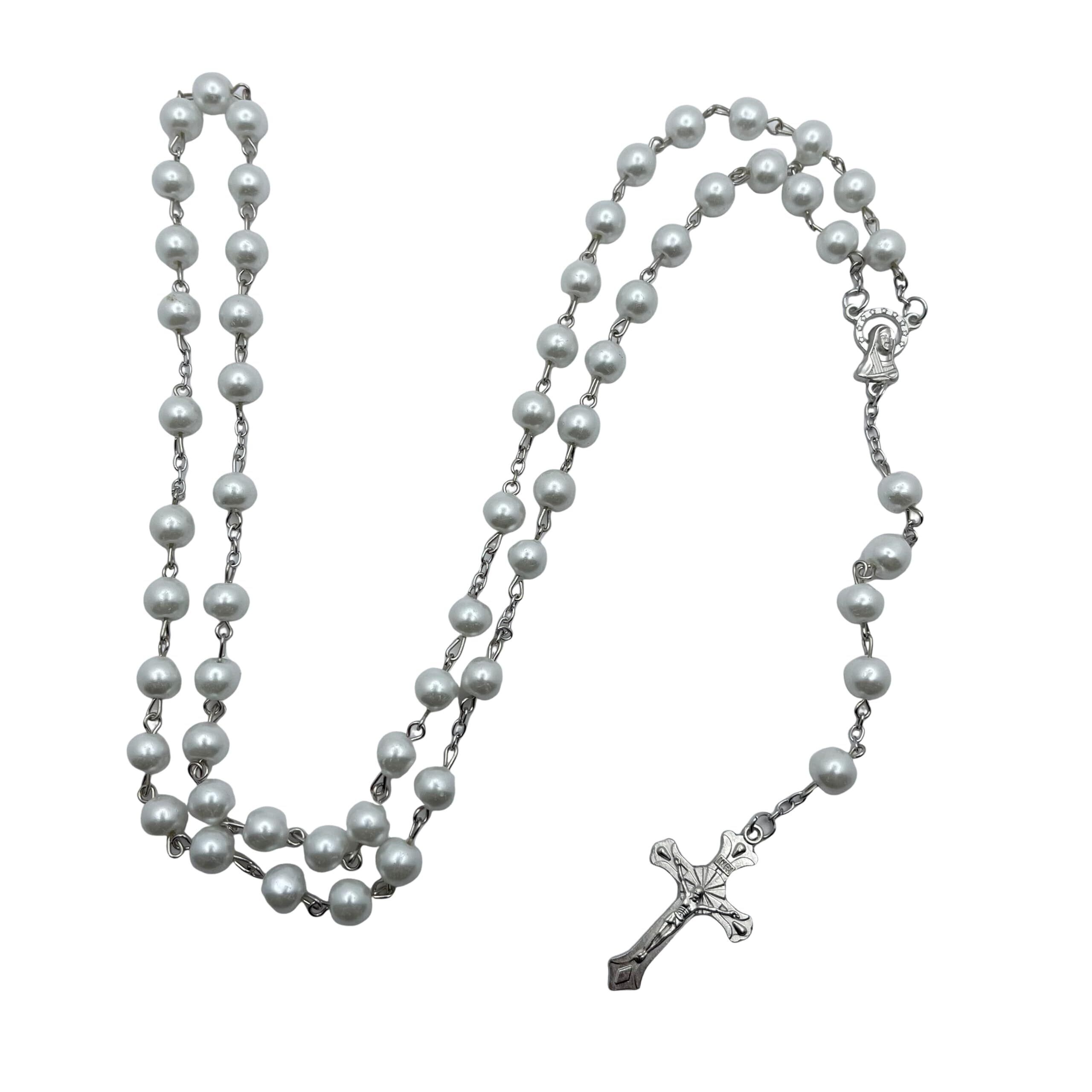 樹脂製のホワイトパールを使った美しいロザリオです。