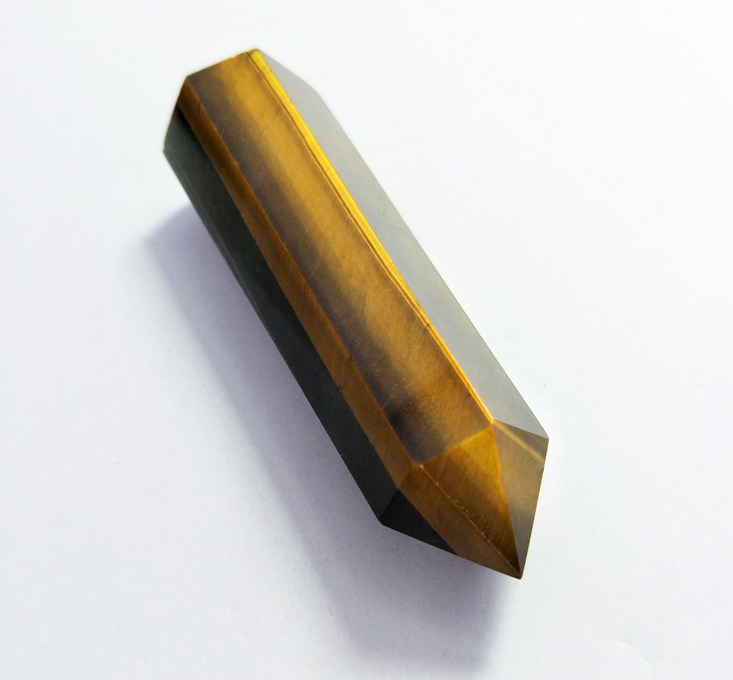 ヒーラーの天然石パワーストーンタイガーズアイヒーリングワンド 先のとがった多面体仕上げ仕様のクリスタル棒で 癒し瞑想とチャクラ強化 エネルギーヒーリングなどに最適 HealingクリスタルWandsポイントファセット