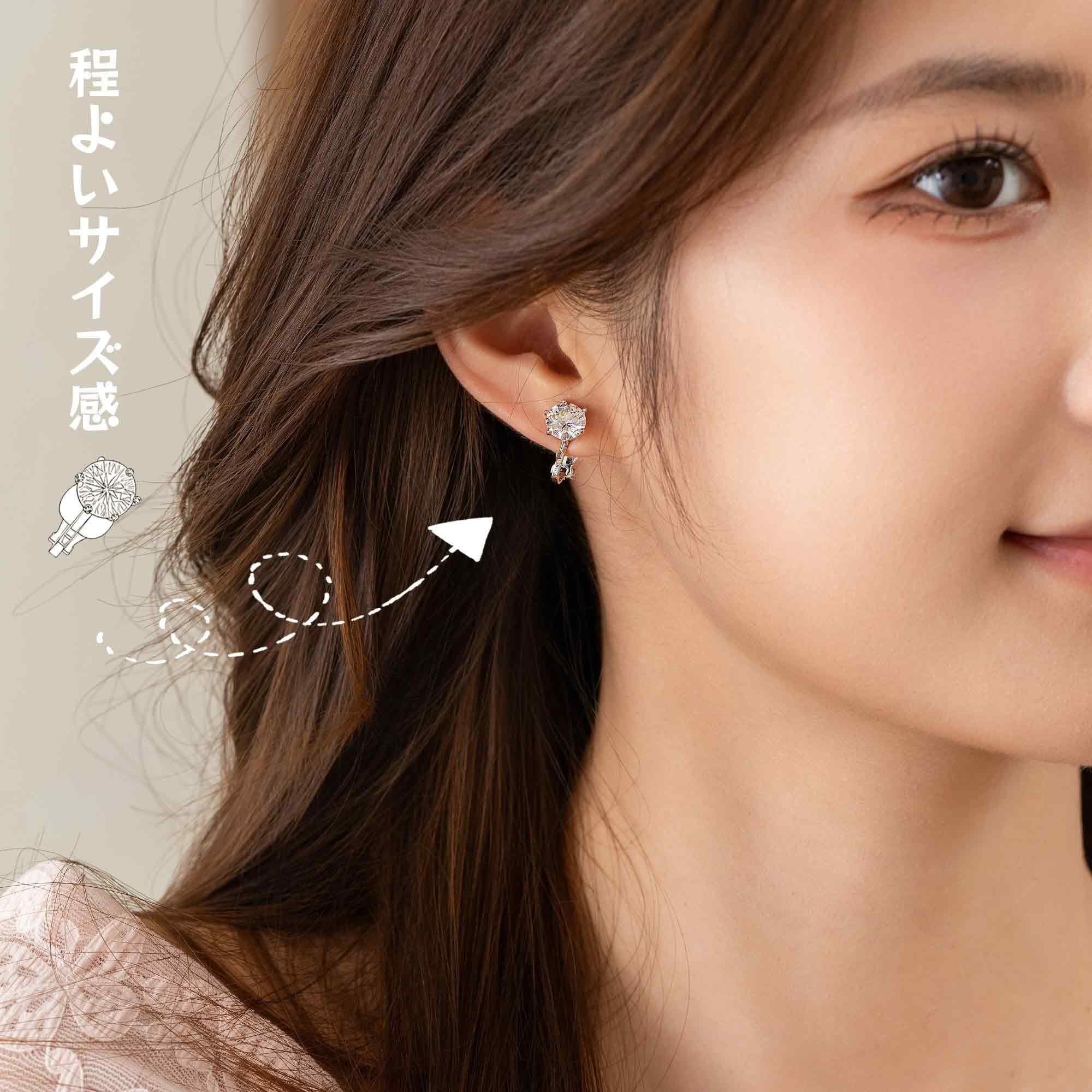 [レディース イヤリング ジルコニア 金属アレルギー対応 痛くない ニッケルフリー シンプル 立爪ジュエル ノンホールピアス k18金 人気 デザイン 可愛い プレゼント 誕生日 記念日 シルバー ピンクゴールド ファッション アクセサリー ギフトボックス付]