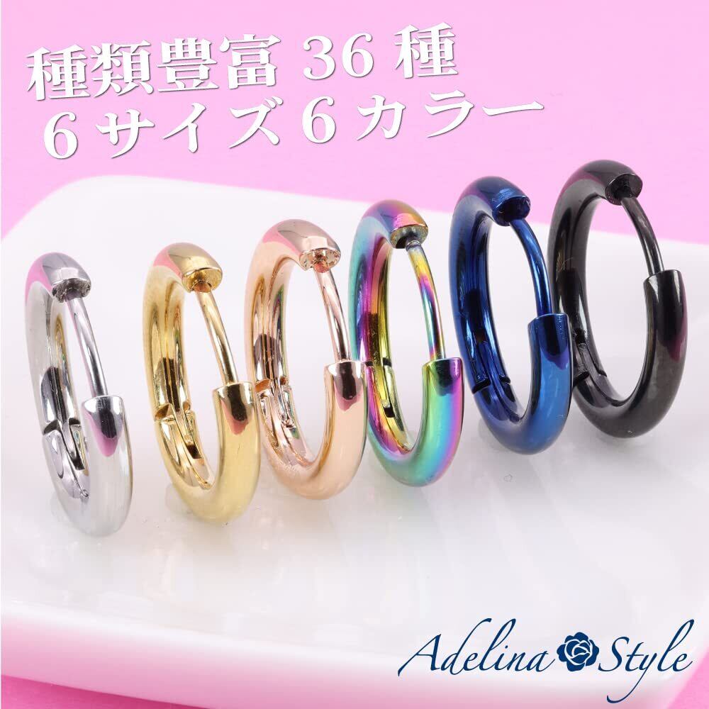 【シンプルなフープピアスで洗練されたスタイルに】どんなファッションにも合わせやすいリングピアスは日常使いはもちろん特別な日にもぴったりのアイテム。シルバー・ゴールド・ブラック・ブルー・レインボー・ローズゴールドの6カラー展開でカジュアルからフォーマルまで幅広く活躍します。フープピアスはレディースピアスとしてはエレガントで可愛らしさを演出しメンズピアスとしてはスタイリッシュでクールな印象を与えるユニセックスデザイン。シンプルながらも存在感のあるデザインでどんなコーディネートにも馴染みます。