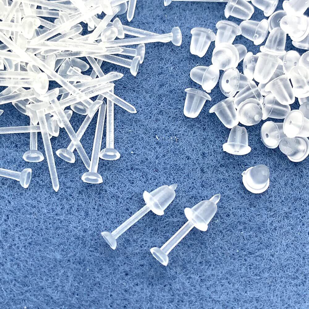 100個 シークレットピアス 目立たない 透明 樹脂 学校や仕事 バイトなど 目立たずにピアスホール維持出来る クリアピアス バレない 金属アレルギー対応 ホール保持 シリコンキャッチつき 夏 海 プール 温泉 つけっぱなしOK【森の雑貨屋さん】