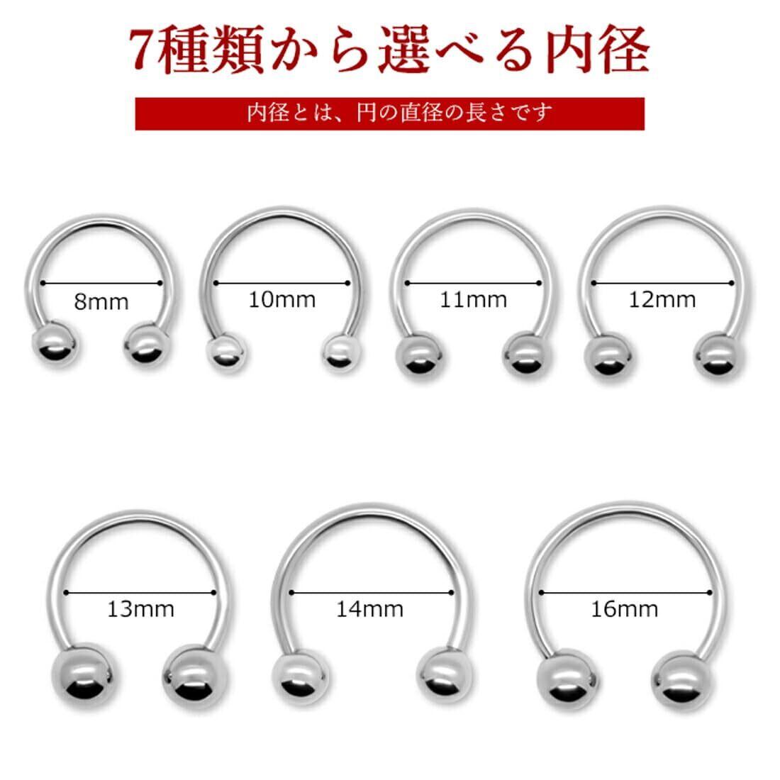 【さまざまなサイズバリエーション】初心者にオススメな18G、一般的なボディピアスサイズの16G、軟骨用にオススメの14Gの3サイズ、内径サイズは短めの6mmから長めの16mmまで幅広く取り扱っているので、お好みのサイズに合わせてお選びいただけます。さまざまな長さのピアスを組み合わせることで、個性的なコーディネートが楽しめます。