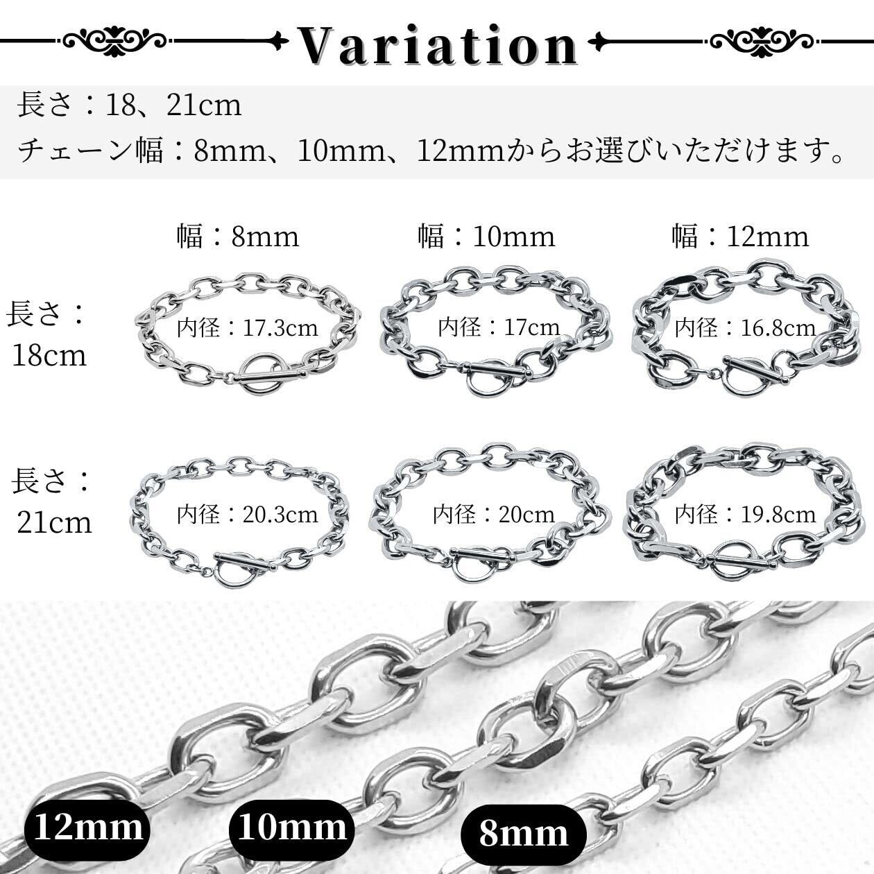 [swars] ブレスレット ユニセックス 金属アレルギー対応 ステンレス マンテル チェーン シルバー (21, 幅:8mm)