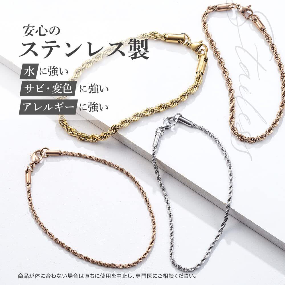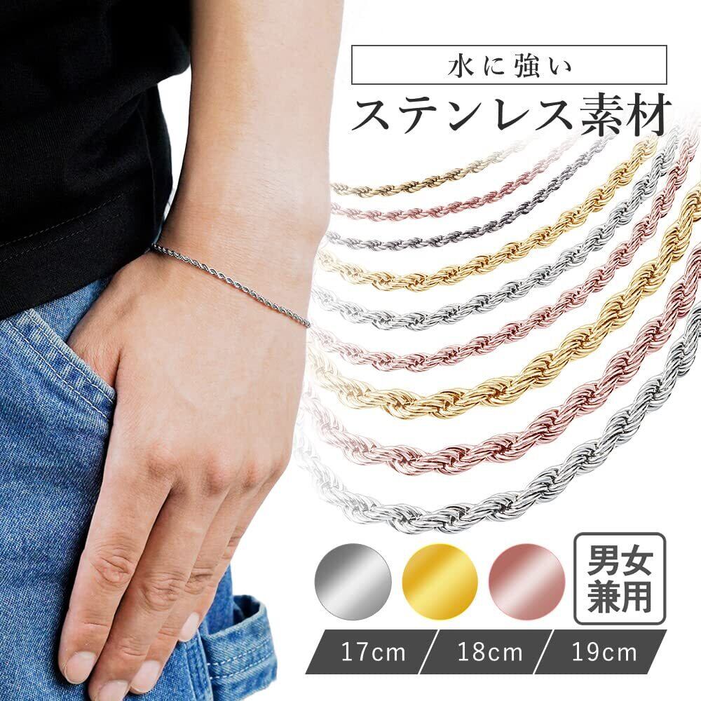ブレスレット メンズ レディース つけっぱなし ステンレス ロープチェーン ロープ ロープブレスレット スクリューひねり ねじり ツイスト フレンチ スクリュー チェーンブレスレット チェーン ハワイアンジュエリー シルバー ゴールド ピンクゴールド