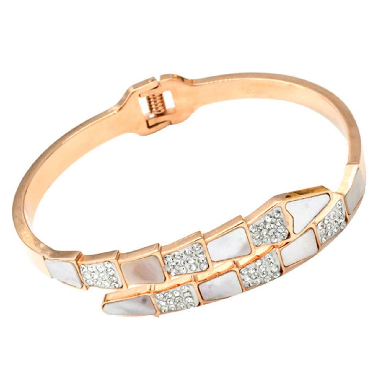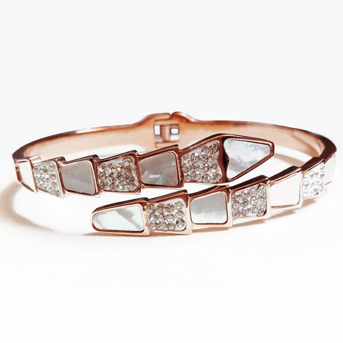[フリーサイズ バングル レディース ピングゴールド ジルコニア 貝の殻 おしゃれ 蛇形ブレスレット 仕上げ チタン製 人気 アクセサリー]