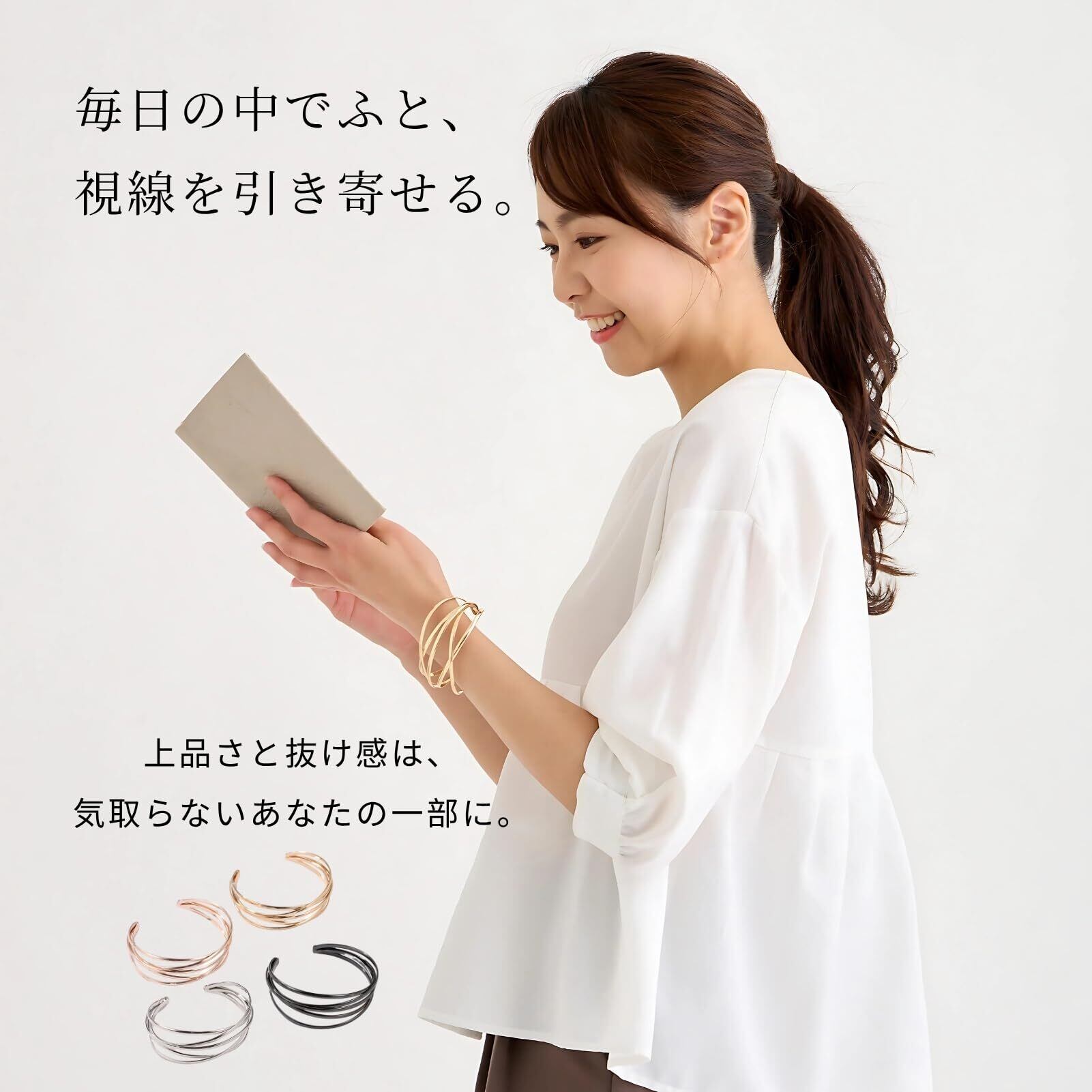 【安心してご使用いただける高品質素材!】このバングルは、耐久性に優れた素材を使用しており、手首に優しくフィットします。軽やかな着け心地と、長時間の着用でも快適さをキープするため、日常使いとしても非常におすすめです。また、どんなお肌の方にも安心してお使いいただけるアイテムです。