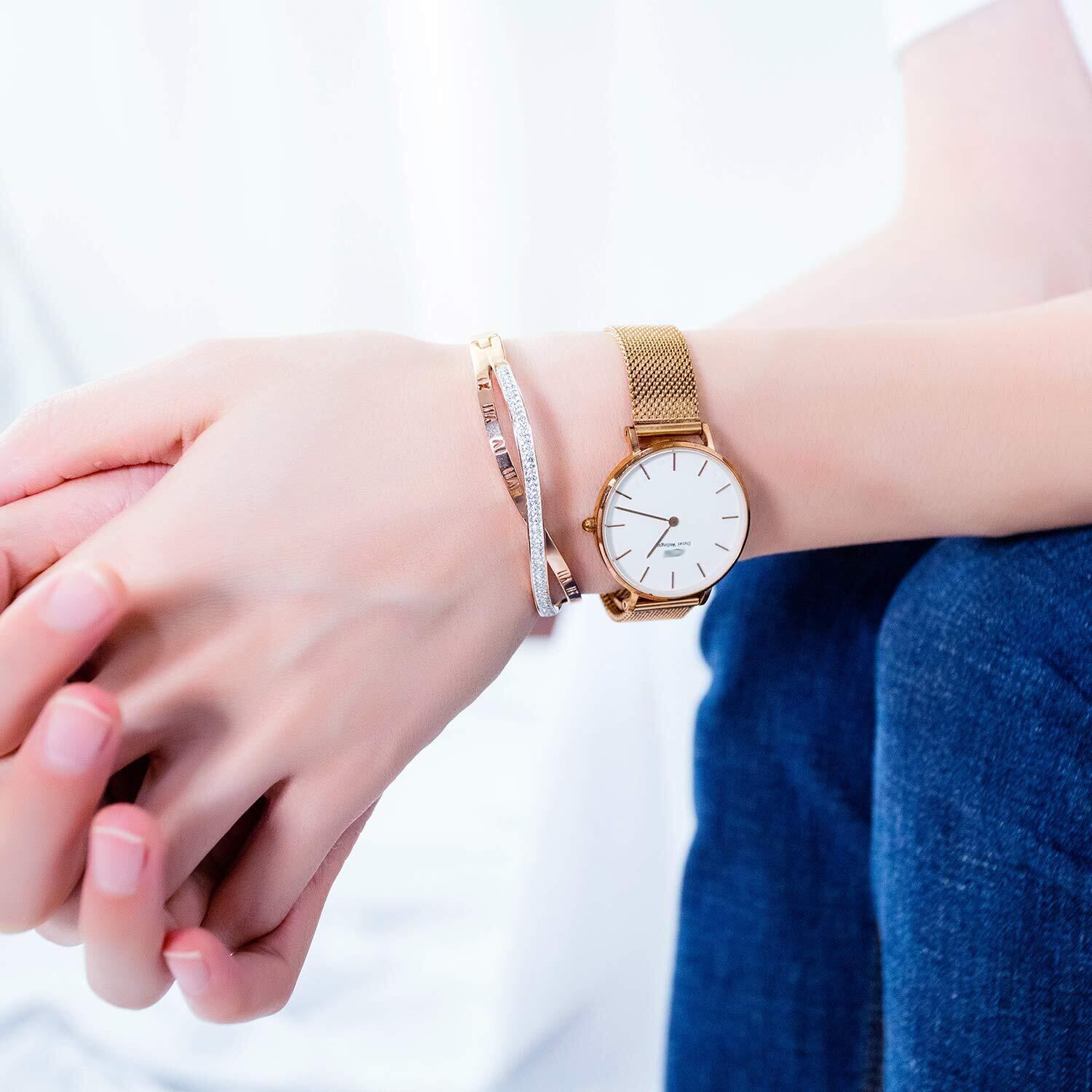 Rockyu レディース ブレスレット バングル ピンクゴールド ジルコニアcz 交差 純チタン製ブレスレット シンプルファッションアクセサリー