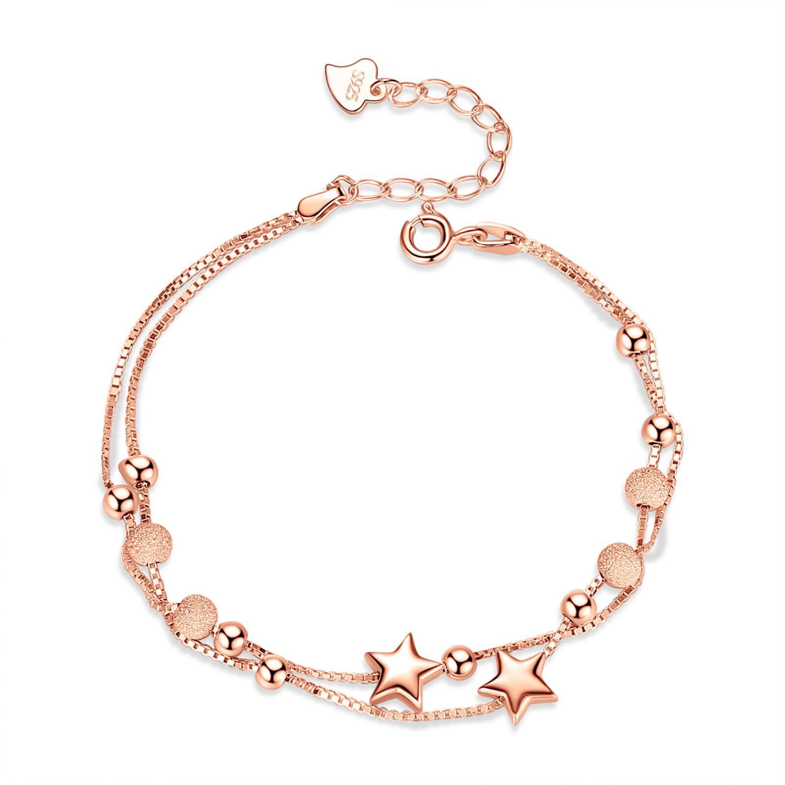 [シルバーサンダー] アンクレット レディース つけっぱなし人気 - シルバー 925 金属アレルギー対応 足首 アクセサリー 星 五芒星 連珠 幸せ 祈り 2連 ボールチェーン プレゼントオススメ