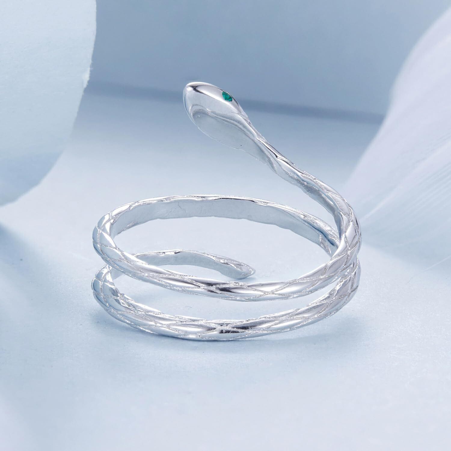 [Rockyu] スネークリング レディース 925純銀 ホワイトゴールドメッキ 調節可能 蛇モチーフリング ジルコン装飾 誕生日プレゼント