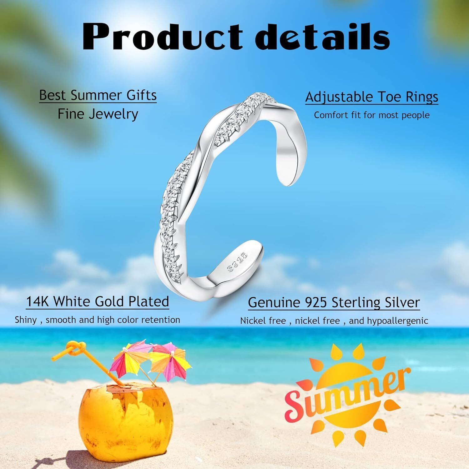✦繊細でユニークなデザイン✦様々なスタイルのスターリングシルバートゥリング:オパールトゥリング、無限リング、ジルコニアリング。これらのエレガントなトゥリングは、ビーチパーティー、ダンス、結婚式、デート、夏のカクテルパーティー、プールサイドなどの機会で注目を集めるでしょう。