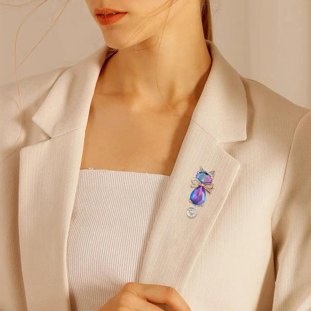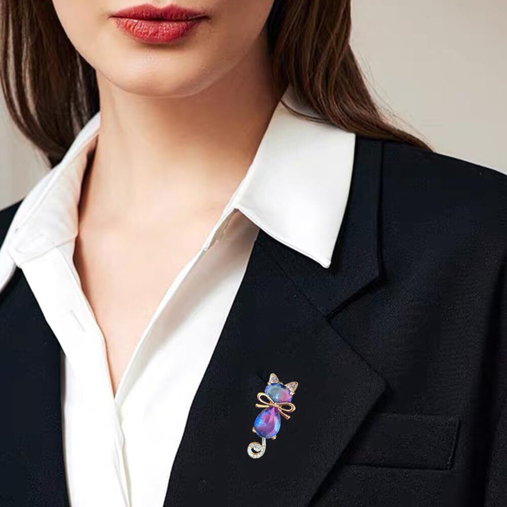 【魅力的な猫と鳥デザインのブローチ!】このブローチは、可愛らしい猫と鳥がデザインされたユニークなアイテムです。クリスタルの輝きが加わり、どんなコーディネートにも華やかさをプラスします。特に制服や日常のファッションのアクセントとして最適で、見た目にも楽しい一品です!