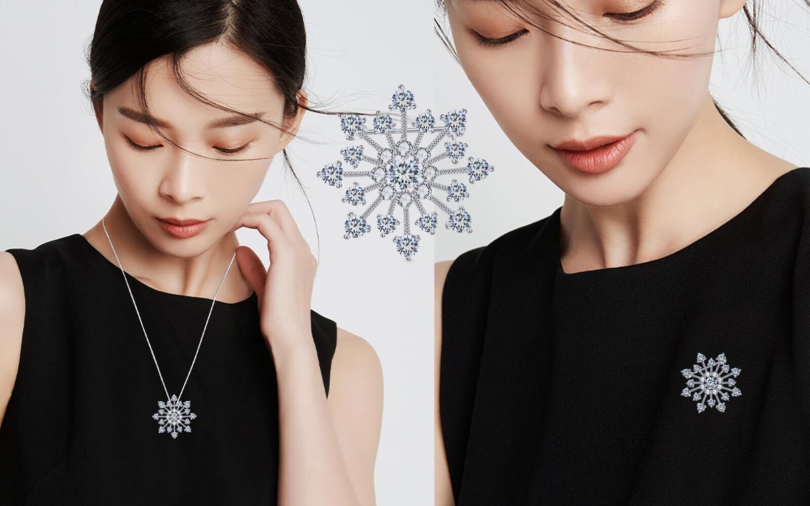 上品優雅:ブローチ 花 雪をモチーフにして、胸元に留めると艶やかな光沢があり、優雅で余裕のある女性らしさを引き立ててくれます