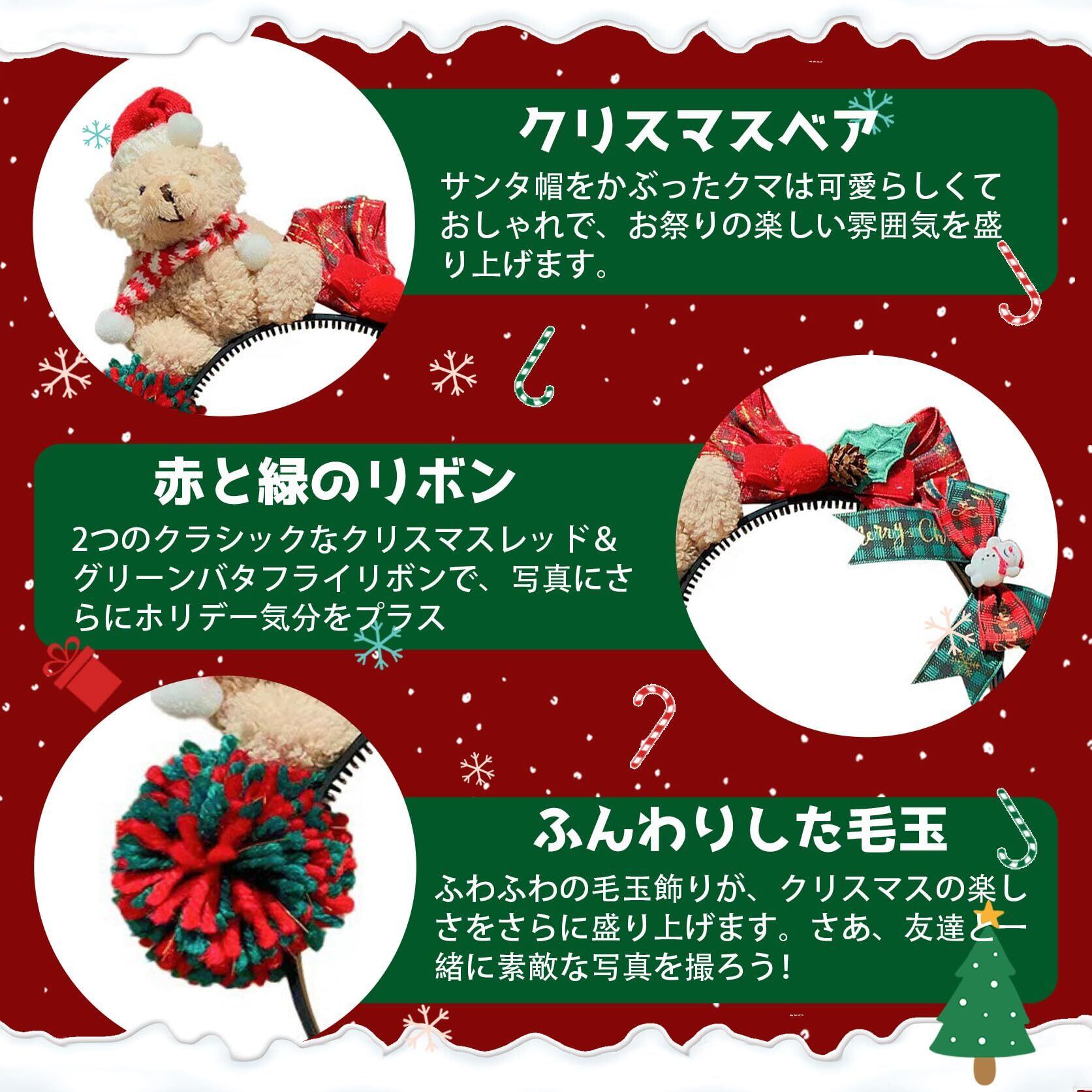 [ZEZYXUFM] クリスマス カチューシャ 大人 女性 クリスマスベア 雪だるま 蝶結び 毛玉 柔らかい 軽量 圧迫感がない コスチューム パーティー 仮装 可愛い 小物 雰囲気満 前髪アップ パーティーグッズ 写真撮影