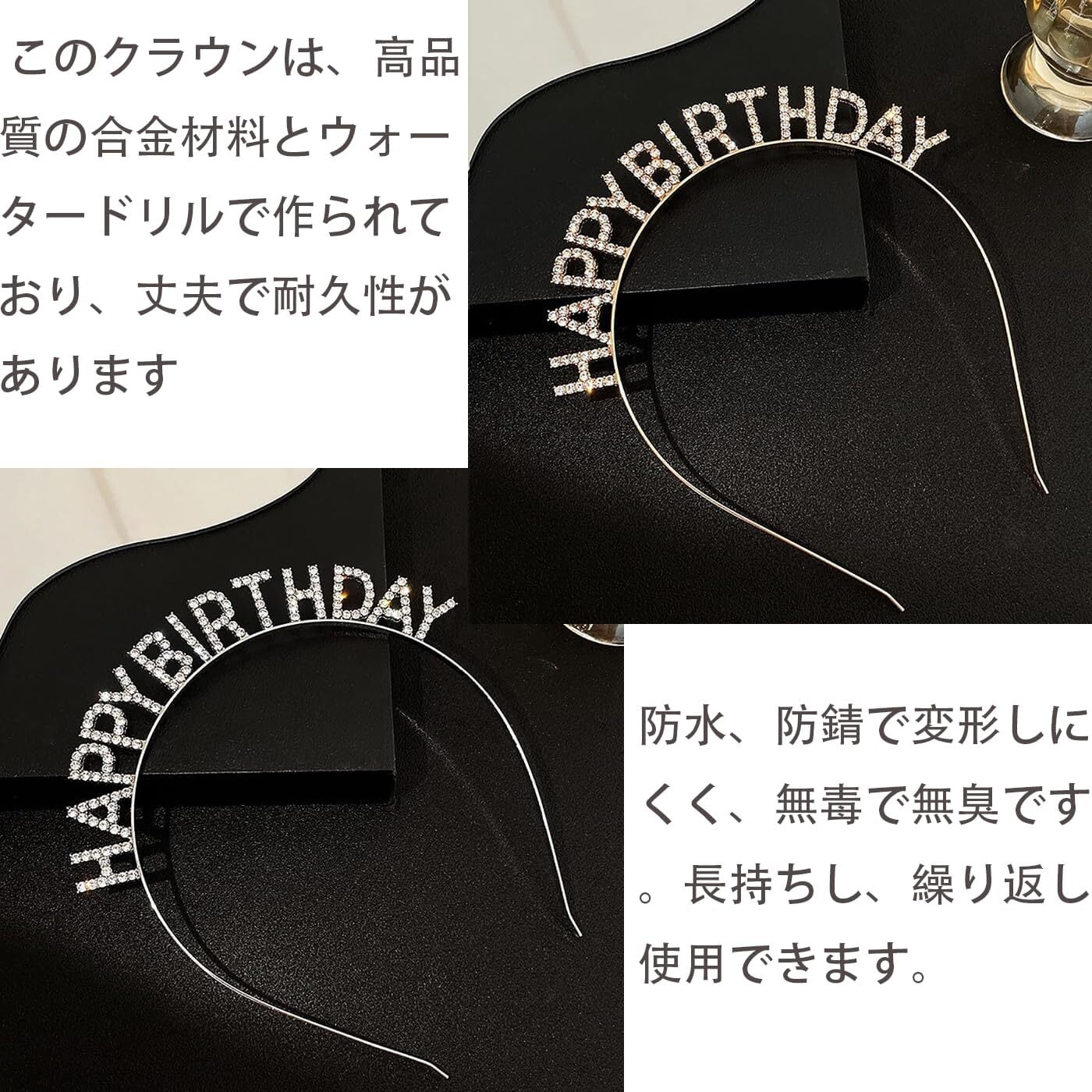 【高品質の素材で長持ち】このハッピーバースデークラウンは、高品質の合金材料とウォータードリルを使用して作られており、耐久性に優れています。防水、防錆仕様で変形しにくく、無毒かつ無臭なので安心してご使用いただけます。長期間の使用にも耐えることができ、繰り返しお使いいただけるアイテムです。