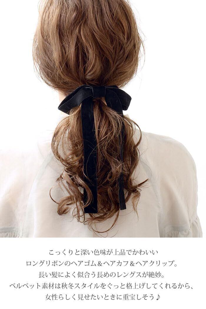 [ヴァンテーヌ] VINGTAINE ベルベット ロング リボン ヘアゴム ポニーフック ヘアカフ ヘアカフス シンプル ヘアアクセサリー H7384