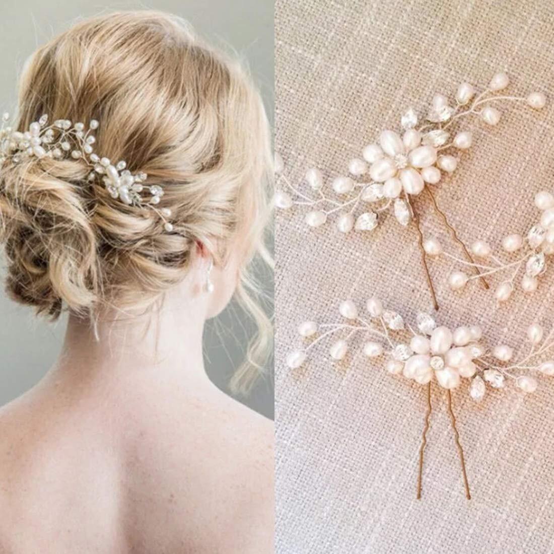 パール ヘアピン ヘアアクセサリー ブライダル 結婚式 ウェディング パーティー花嫁 ヘッドドレス 髪飾り (シルバー軸) 3本セット
