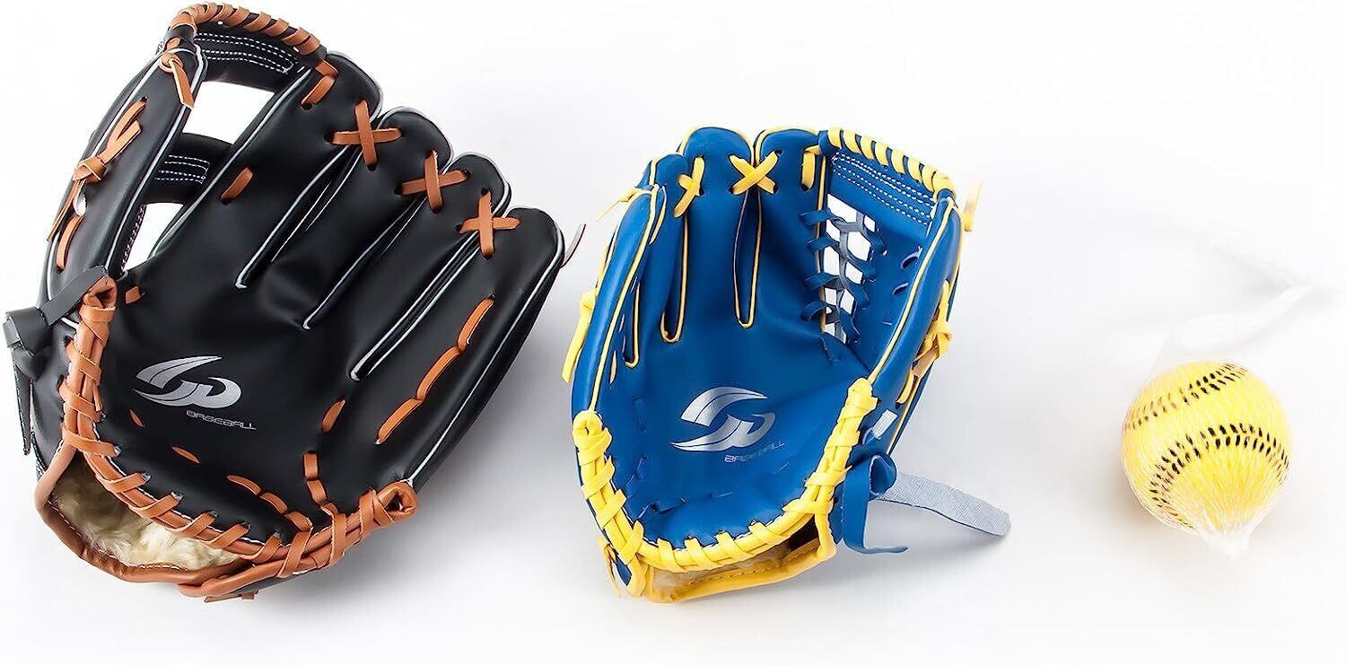 【安心のサイズ展開と快適なフィット感!】大人用グローブは11.5インチの黒、子供用は9インチの青となっており、親子それぞれに合わせたサイズが選べます。柔らかい素材を使用しているため、初心者でも扱いやすく、手になじみやすい設計です。