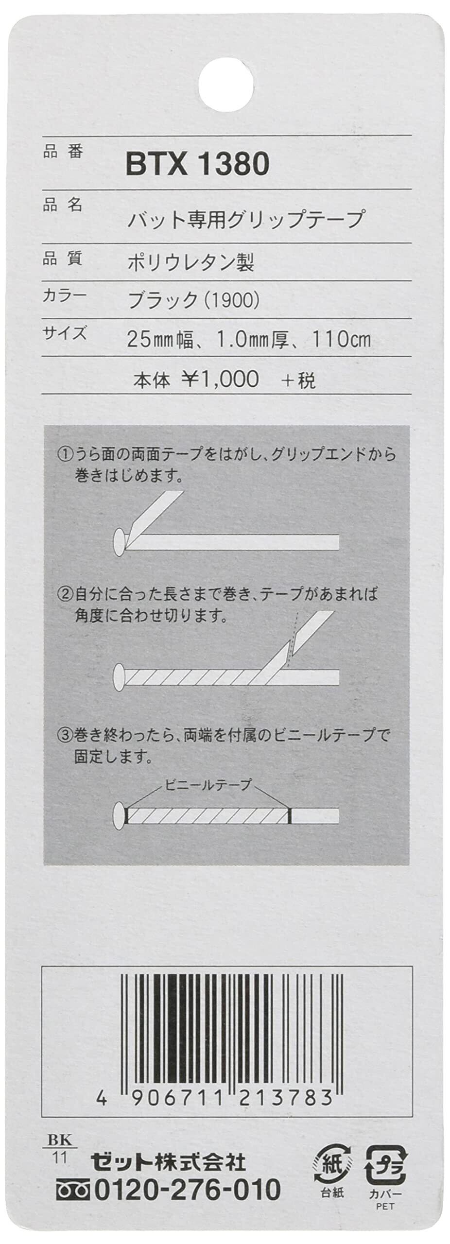 ゼット(ZETT)野球 バット用 グリップテープ (ナノテクノ) ブラック BTX1380