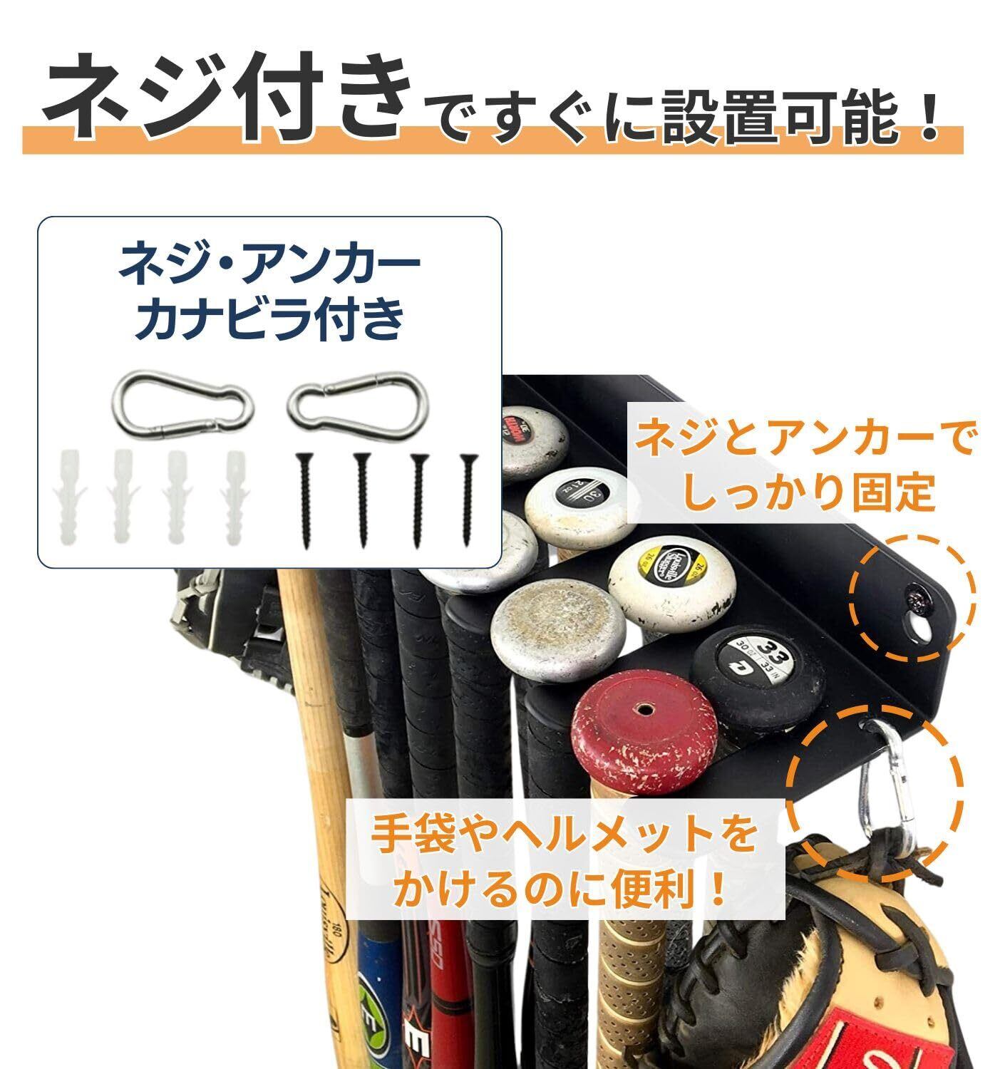野球バット収納ラック バットスタンド 野球バットラック 14本 壁掛け 吊り下げ ネジ カナビラ