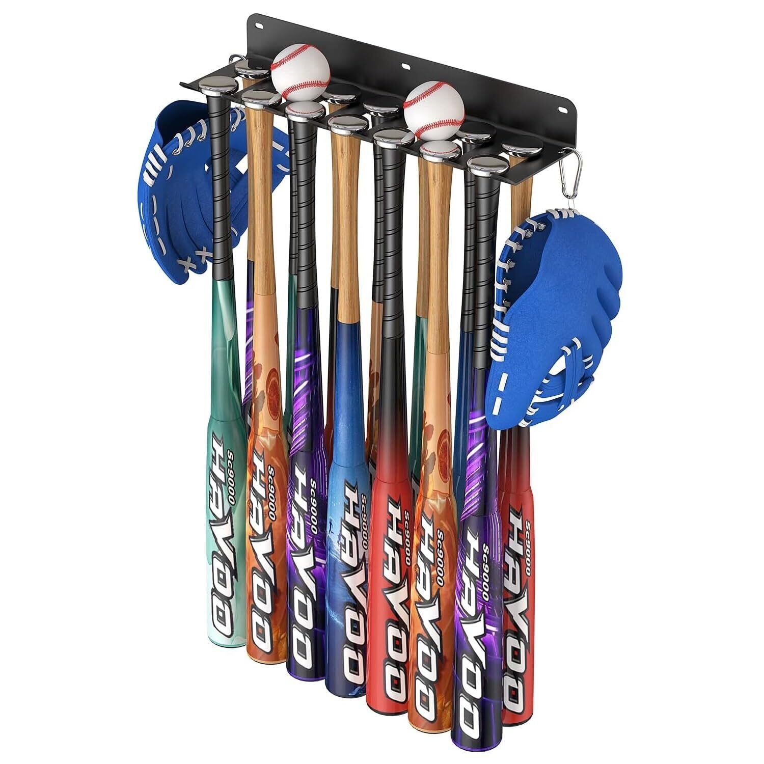 siawadeky 野球バット 収納ラック 14本収納可能 壁掛け 野球バットスタンド 強力固定 多機能 ウォールマウントラック 省スペース 取り付け簡単 バット ディスプレイ 野球ボール グローブ保管 カラビナ ネジ付き 耐荷重30kg