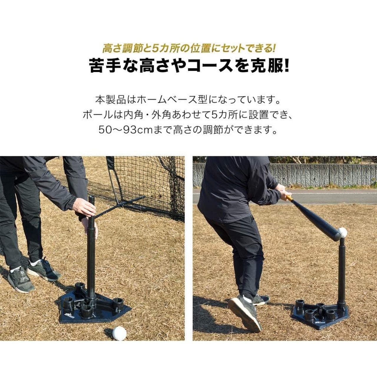 【苦手な高さやコースを克服!】 本製品はホームベース型になっています。ポールは内角・外角あわせて5カ所に設置でき、50~93cmまで高さの調節ができます。