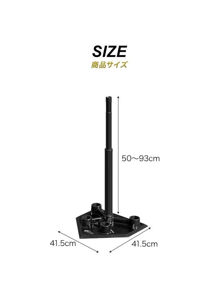【商品詳細】 サイズ: (約)41.5cm×41.5cm×50~93cm 重量: (約)4kg 材質: ラバー 他 特記事項: ※こちらの製品にボールやバット、バッティング練習用ネット等は付属いたしません。