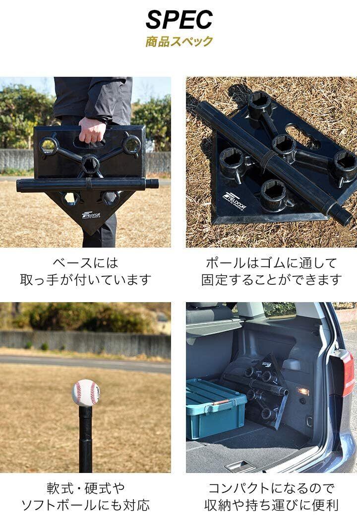 FIELDOOR バッティングティースタンド ティーバッティング 練習器 バッティング練習 高さ調整 ホームベース型 野球 軟式 硬式 ソフトボール 対応 置きティー スイング コンパクト収納