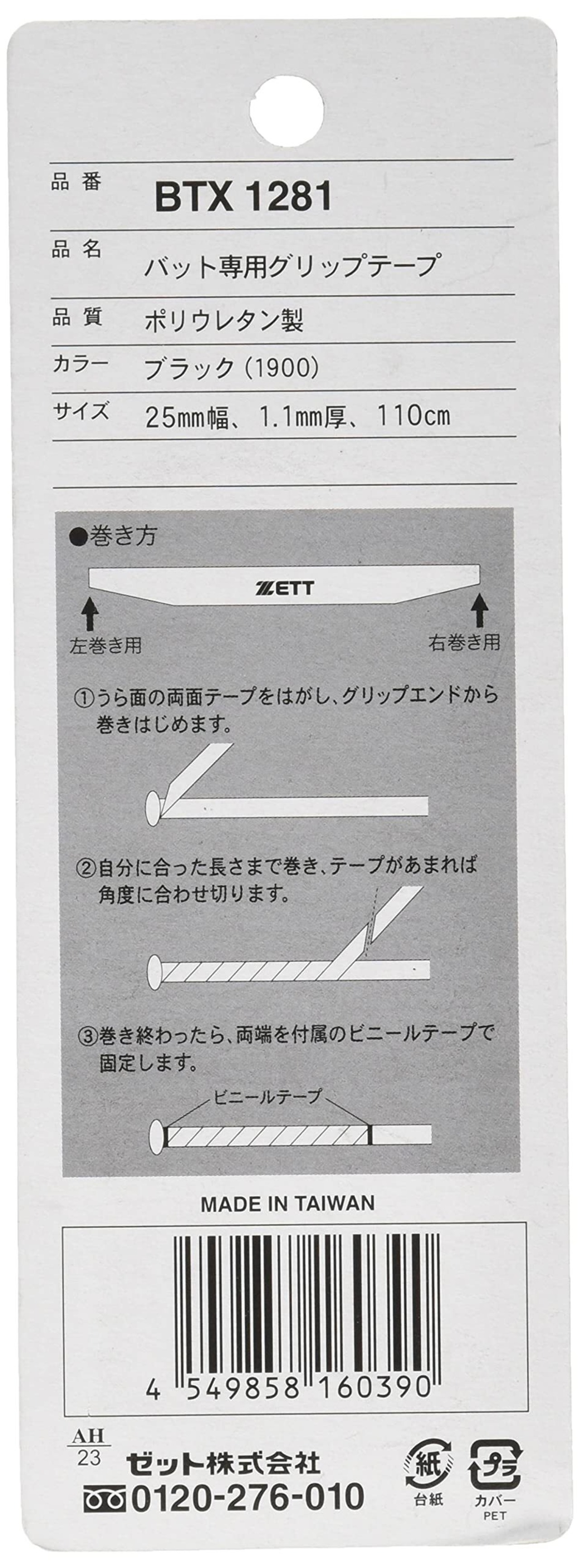 ゼット(ZETT)野球 バット用 グリップテープ ノンスリップ2 1本入り ブラック(1900) BTX1281