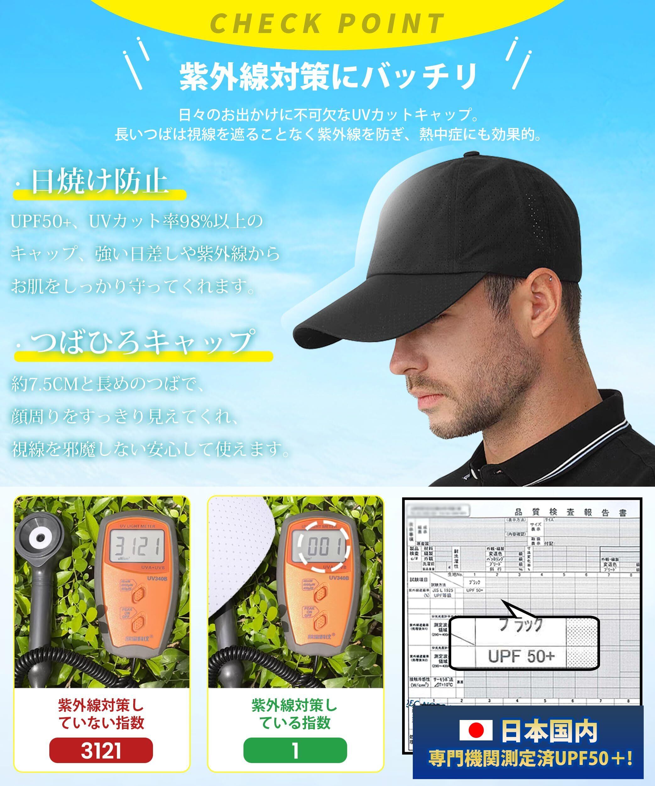 [YUMISS] キャップ メンズ 夏 【約48g超軽量】 【メッシュ速乾生地・良い通気性でサラッと被れ】 UVカット 日除け帽子 つば広 通気 蒸れない 暑くない サイズ調整可 54-60cm 紫外線対策 男女兼用 散歩 ランニング スポーツ