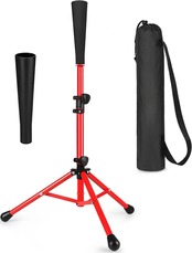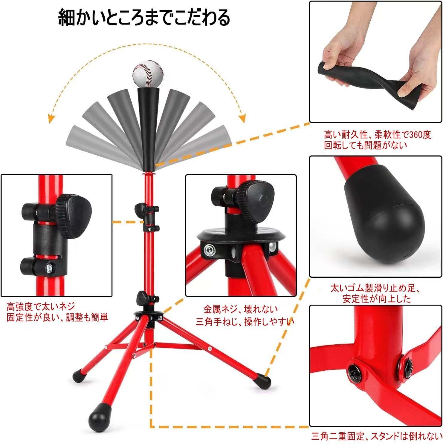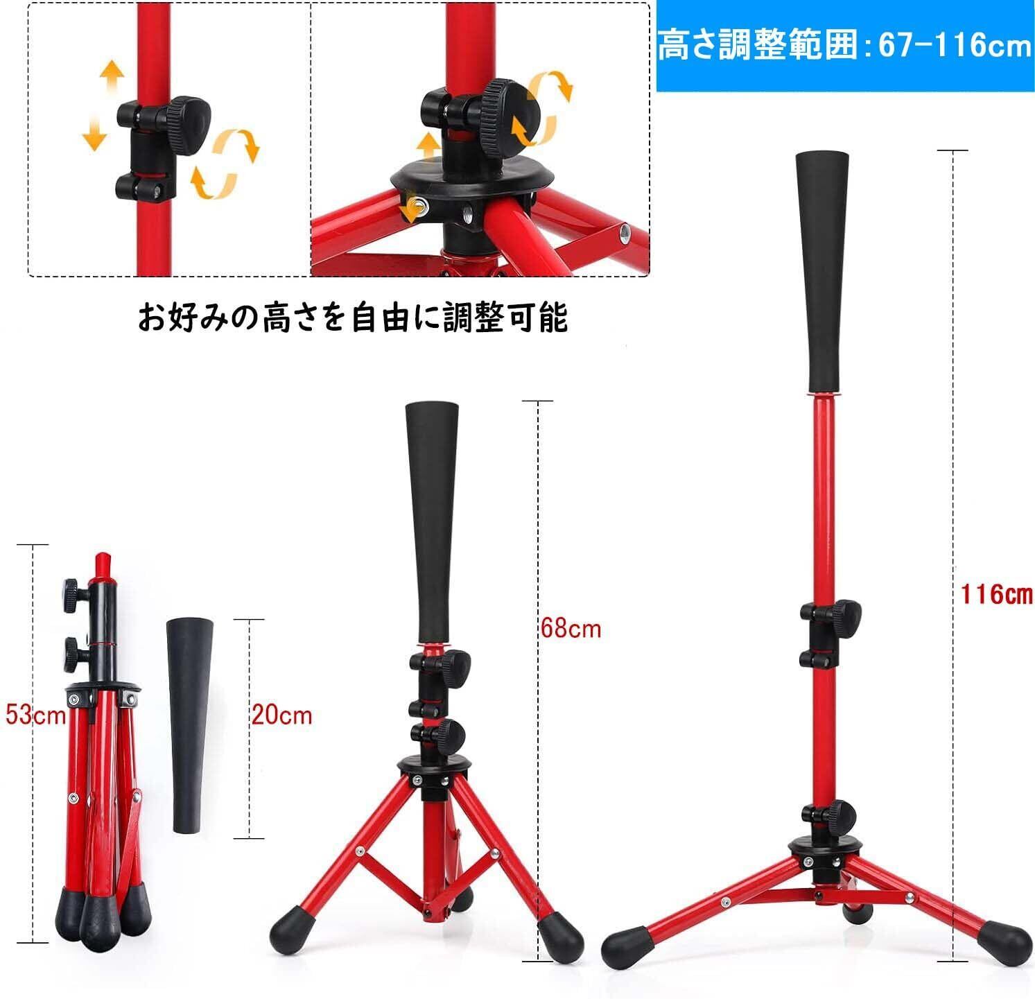 バッティングティー 野球 練習スタンド ボール置きティー高さ67-116cm調整「汎用交換ゴム1個付属」少年大人野球 折畳み式持ち運び便利 硬式/軟式球/ソフトボール 兼用 レジャー ファミリースポーツBaseball & Softball Batting Tees 収納袋付き 三脚タイプ 赤
