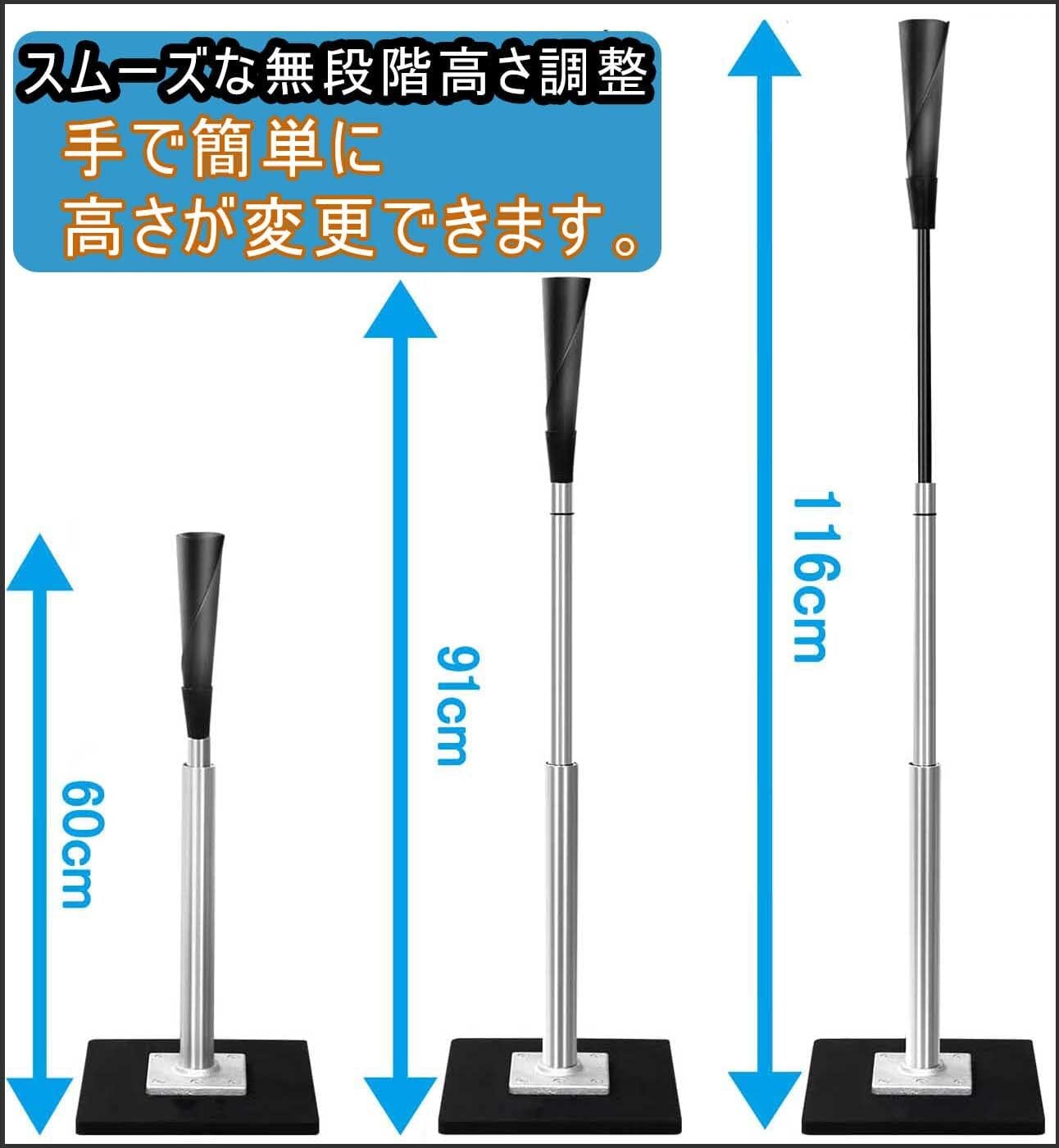 【無段階調整機能で最適な高さを実現!】「バッティングティー 野球 プロモデル」は、60cmから116cmまでの無段階調整が可能で、すべての選手に合わせた最適な高さでの打撃練習が行えます。このティースタンドは、子供から大人まで幅広い年齢層に対応し、成長に応じた練習をサポートします。