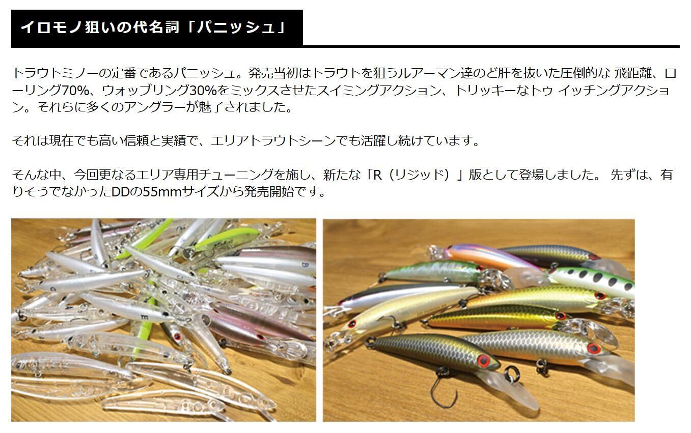 そんな中、今回更なるエリア専用チューニングを施し、新たな「R(リジッド)」版として登場しました。 先ずは、有りそうでなかったDDの55mmサイズから発売開始です。
