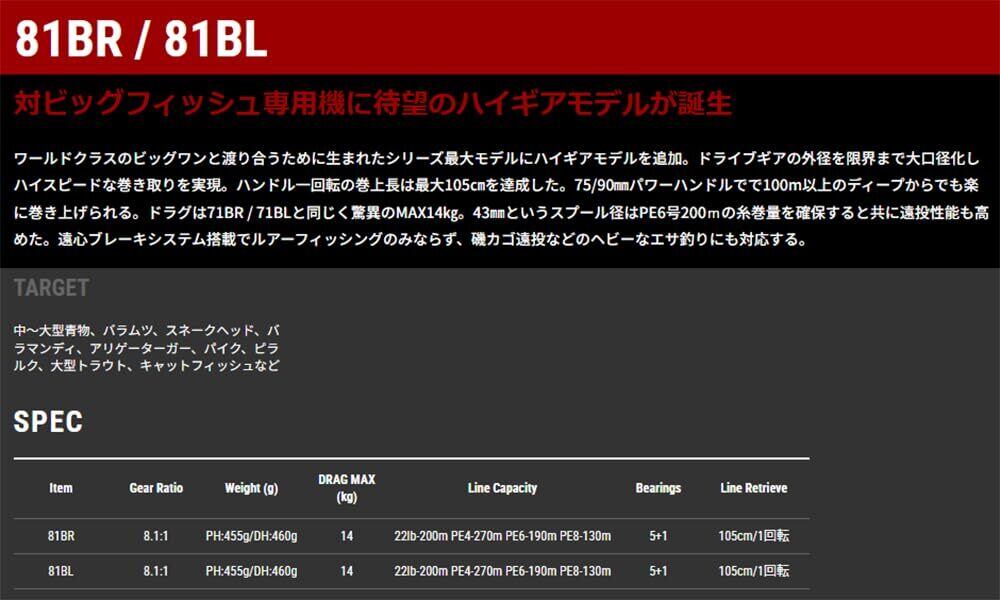 世界中のビッグフィッシュたちに照準を合わせたモンスターマシン ジギング、ショアジギング、怪魚釣りなど、世界中のモンスターに立ち向かってきたワイドパワーシリーズを更にサイズアップ。ワールドクラスのビッグワンと渡り合うために生まれたモデル。ドライブギアのギア径をアップしハイスピード化。7.1:1のギア比で100m以上のディープからでも楽に巻き上げられる。ドラグは驚異のMAX14㎏を達成。43㎜というスプール径はPE6号200ⅿの糸巻量を確保すると共に遠投性能も高めた。遠心ブレーキシステム搭載でルアーフィッシングのみならず、磯カゴ遠投などのヘビーなエサ釣りにも対応する。 センターメインフレーム&ギアサイドプレートは強度と精度を追求したオールダイキャストアルミボディ。ラインへのダメージを軽減させるため、シンクロレベルワインドシステムを採用。シングルパワーハンドルとダブルハンドルの二つのハンドルをパッケージしており、状況によって使い分けが可能。ベイトキャスティングゲームの限界を楽しむチャレンジャーたちへ捧げるモンスターマシン、エランスーパーワイドパワー。 【製品特性】 ■43mm大口径深溝スプール(容量/ナイロン22lb(約6号) 200m、PE4号270m) ■規格外の巨大魚とも渡り合えるMAX 14kgまで耐えるドラグシステム ■120mmダブルと75&90mmシングル、二つのハンドルをパッケージ ■ラインへのダメージを抑えるシンクロレベルワインド ■6点式遠心ブレーキシステムを採用(ダイヤル式) ■強度と精度を追求したオールダイキャストアルミボディー (パーミングサイドカップはグラファイト製)